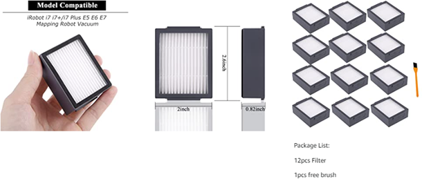 • Hongfa replenishment hepa filters fit model: Roomba i7 7150 i7+ 7550/i7 Plus E5 5134 E6 6198 E7 Vacuum Cleaner.