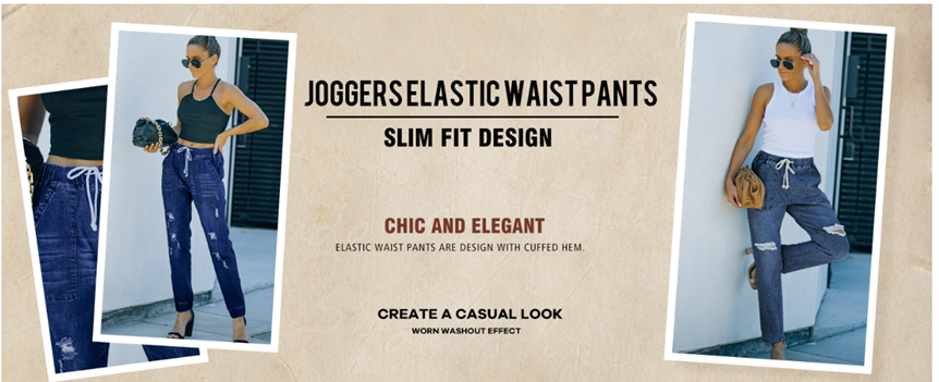 • The distressed details, such as holes or patches, add character and style to the jogger. The pockets on the sides and back can also provide functional and fashionable elements to the pant. Denim joggers jeans can be worn throughout the year with the right styling and layering.