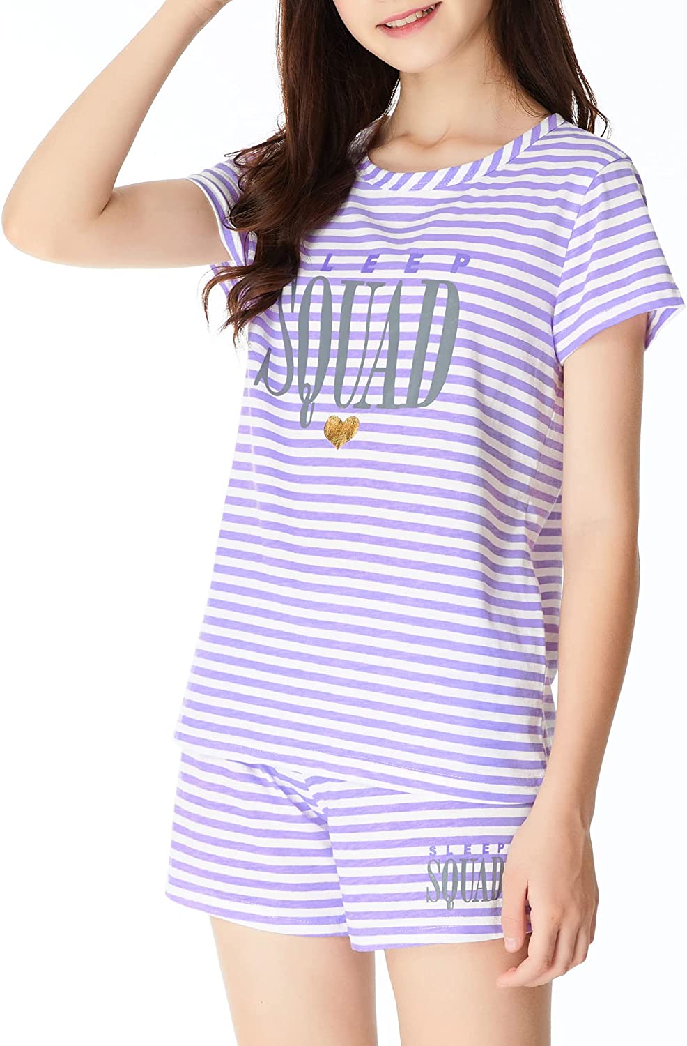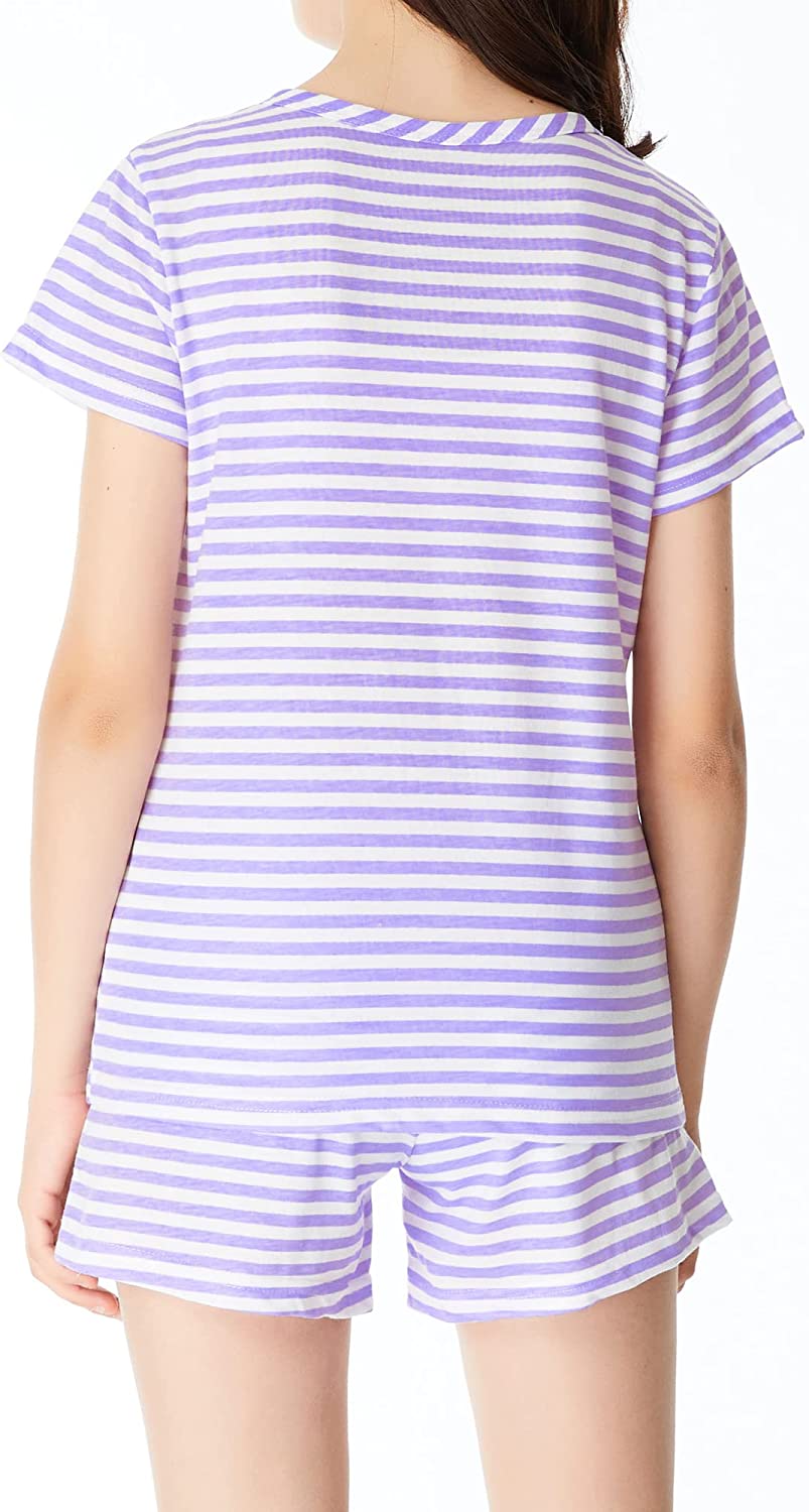 Summer Pajamas for Girls – Stripe & Glittering Heart PJS Pal Cute Jammies Set Big KidsSize 6-16