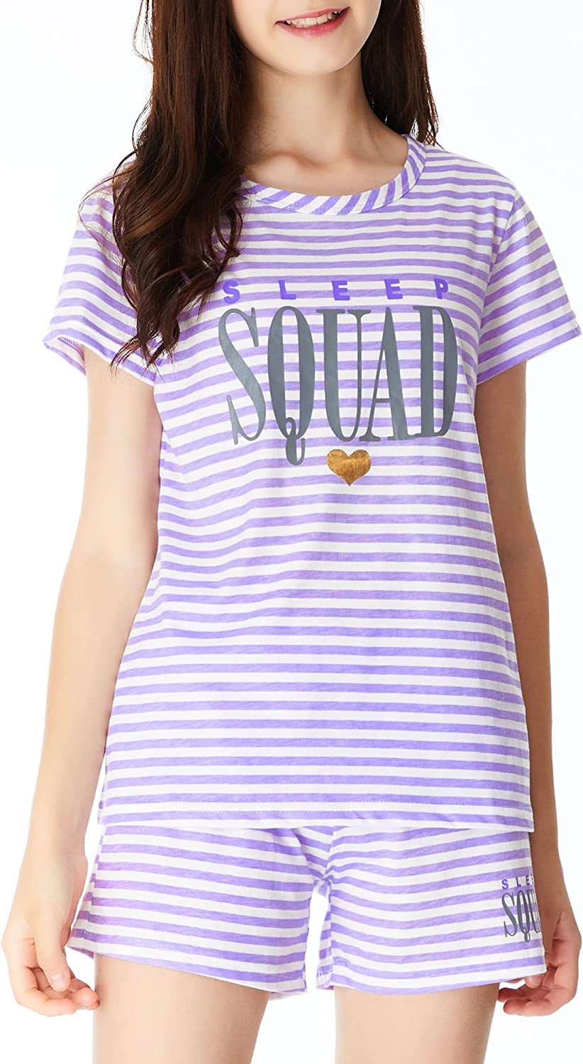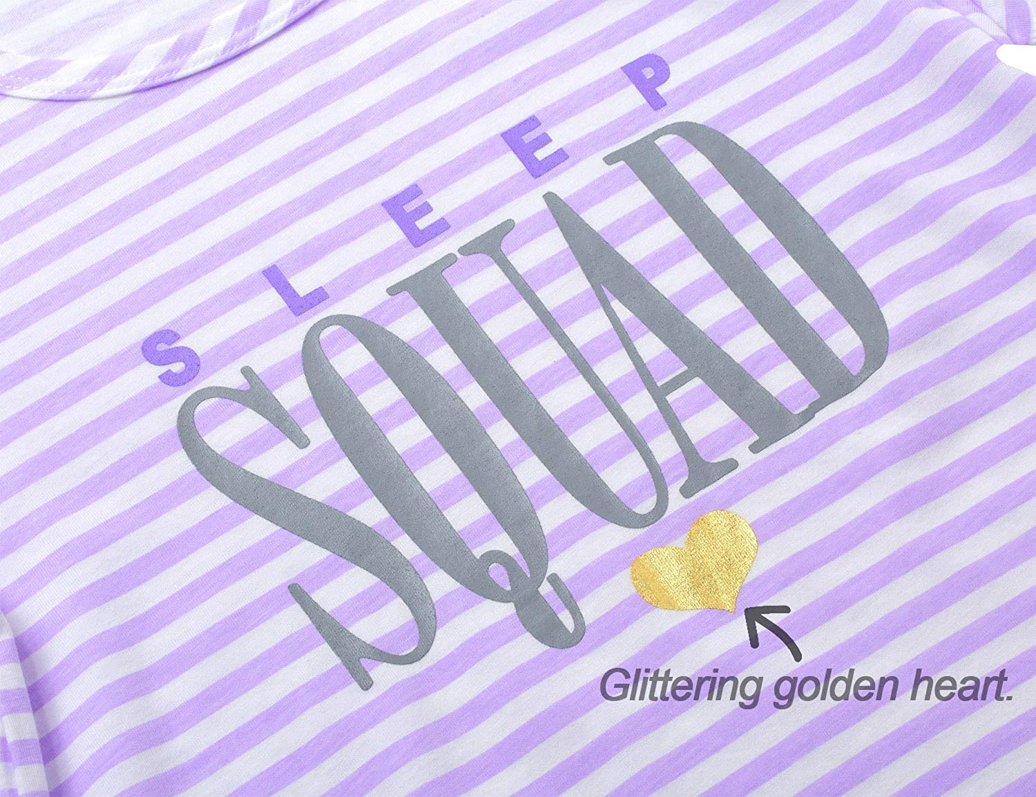 • Feature: Mild purple stripes with text ‘SLEEP SQUAD’ and glittering heart. Both Little kids & teen girls favorite pyjamas.