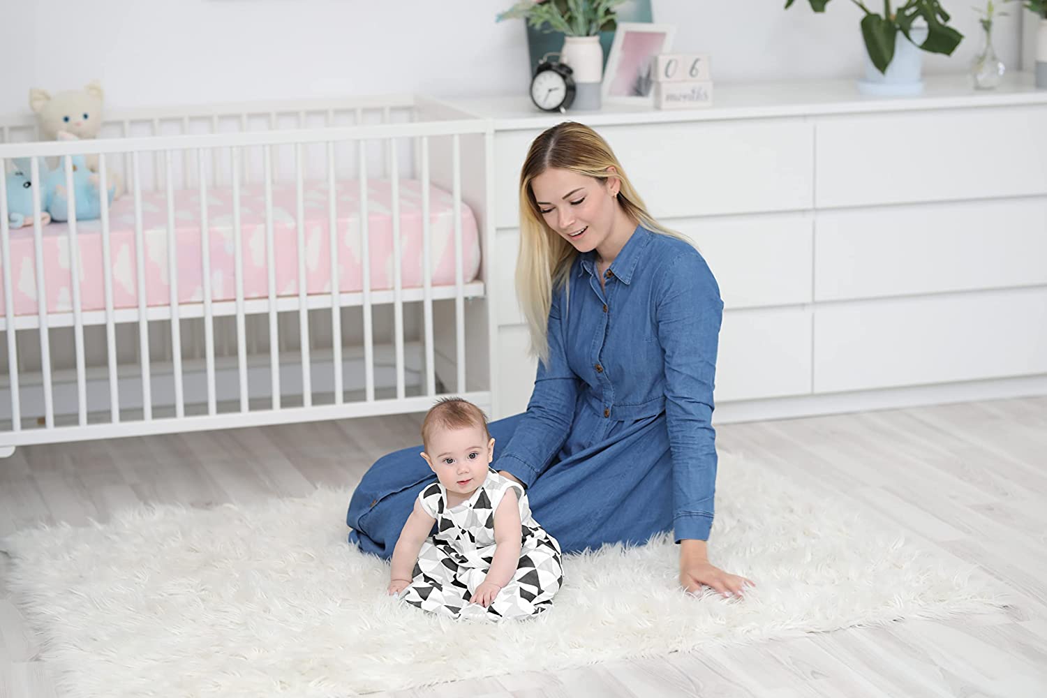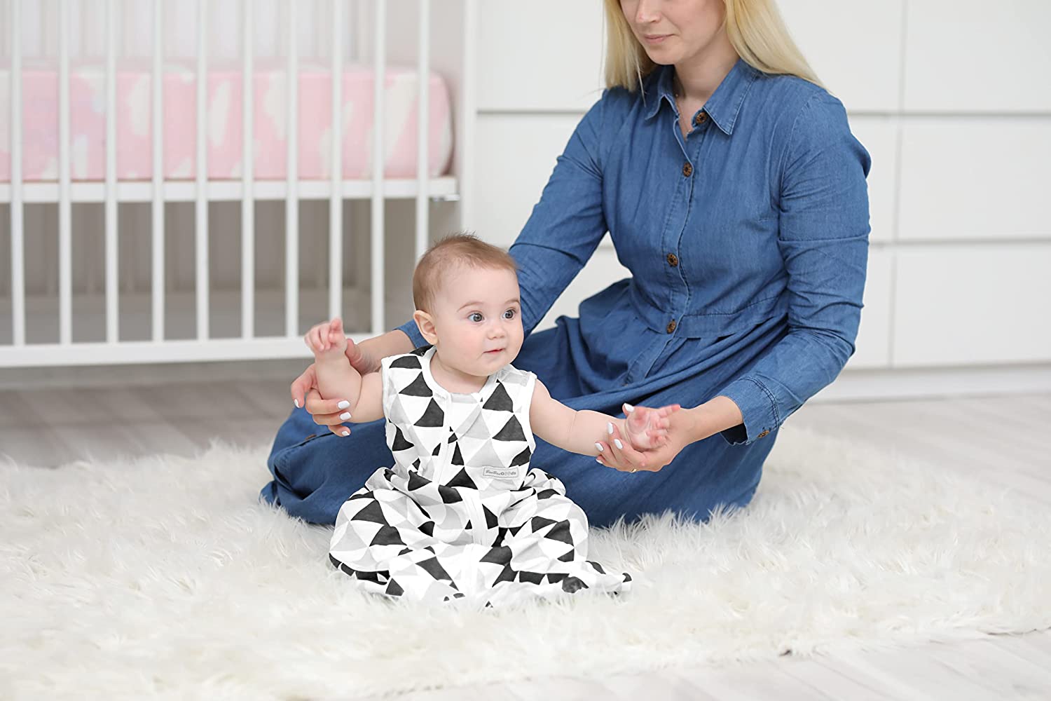 • ZIP UP BREATHABLE BAG SLEEPER – produced from pure cotton, this is a completely breathable infant sleeping bag to keep your baby at an optimum temperature while sleeping. The zip from bottom up feature of our baby sleeping bags is super practical to help parents quickly pop the bag onto a wriggly baby and is great for a mess-free diaper changing time too!