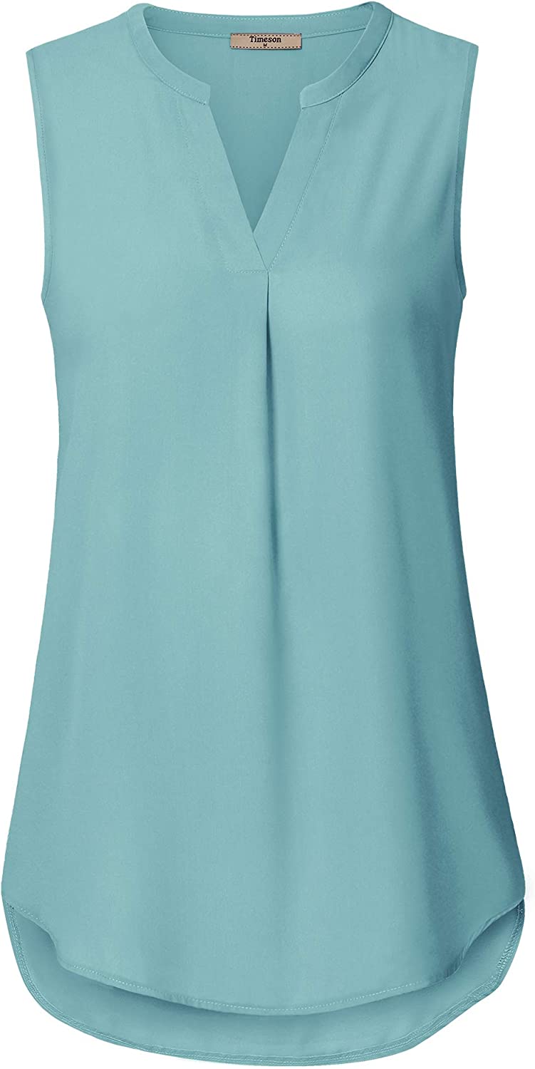 Timeson Women's Chiffon V Neck Sleeveless Blouse Tops Office Work Shirts