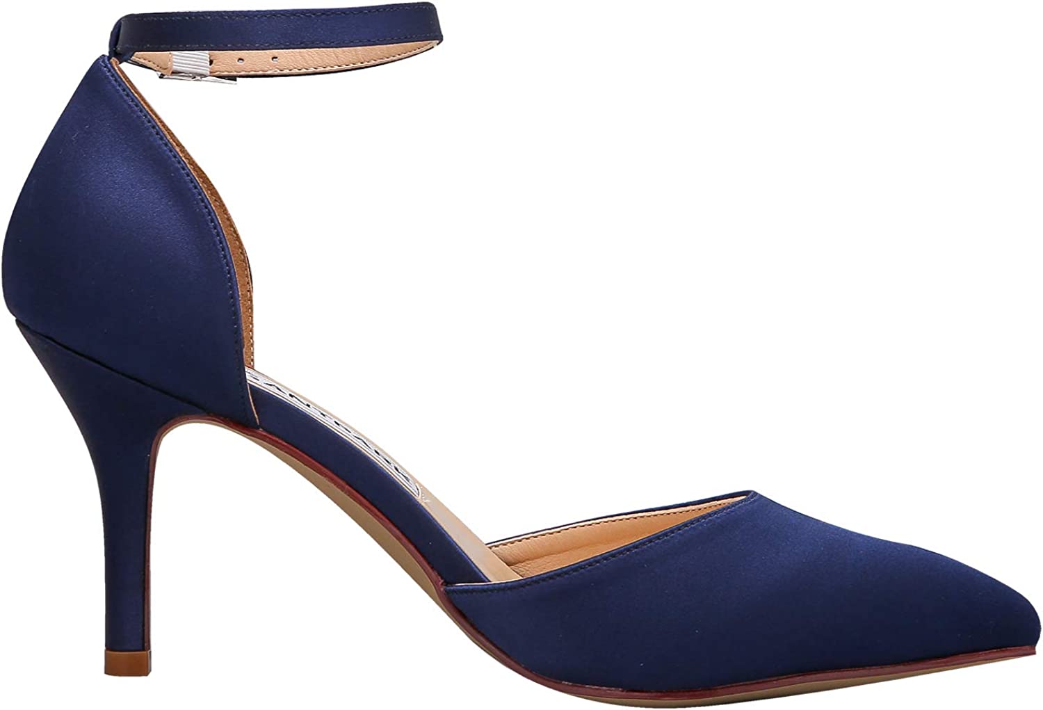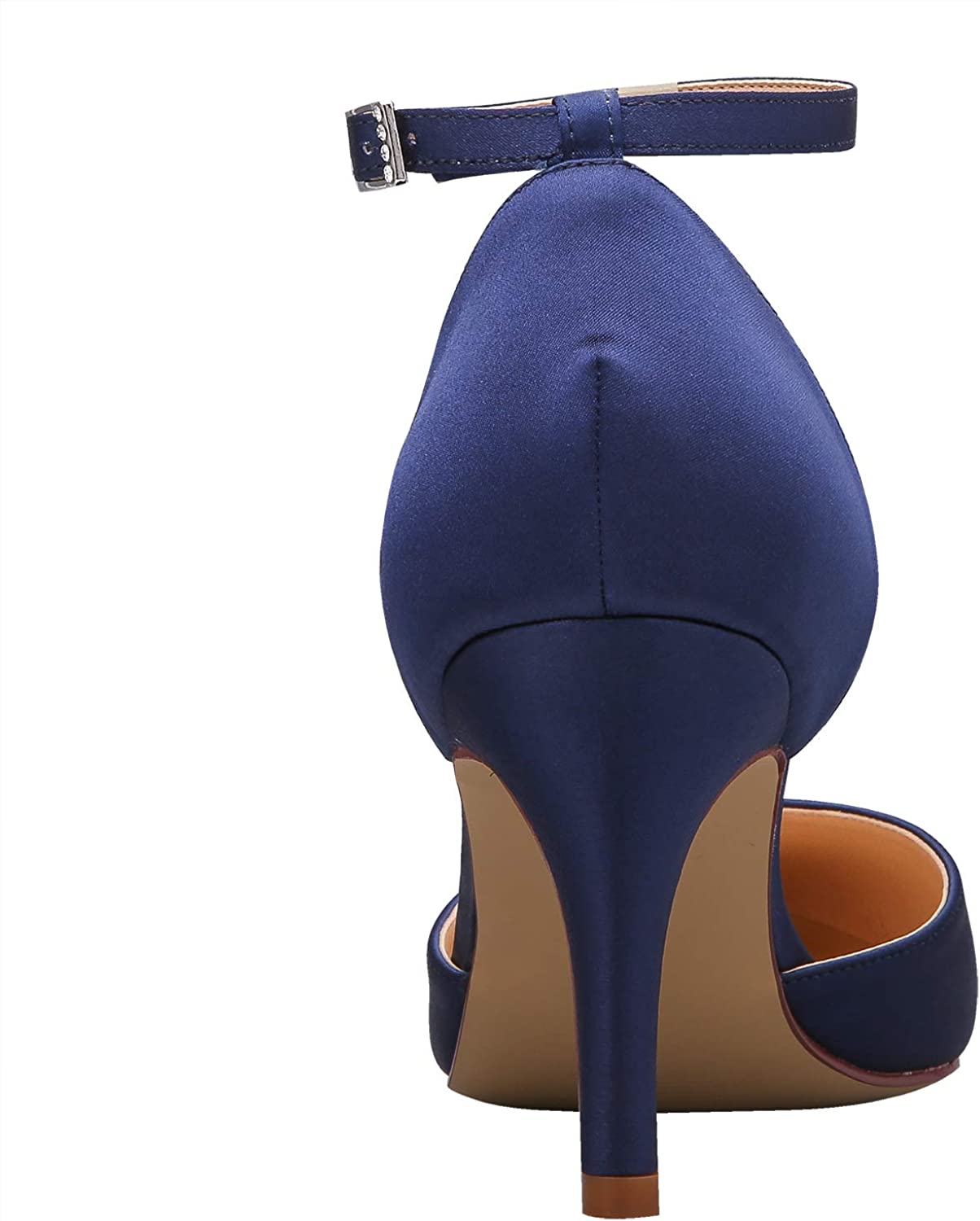 ELEGANTPARK Women Pointed Toe High Heel Pumps Satin Ankle Strap Wedding Bridal Evening Party Dress Shoes