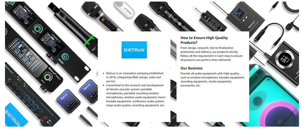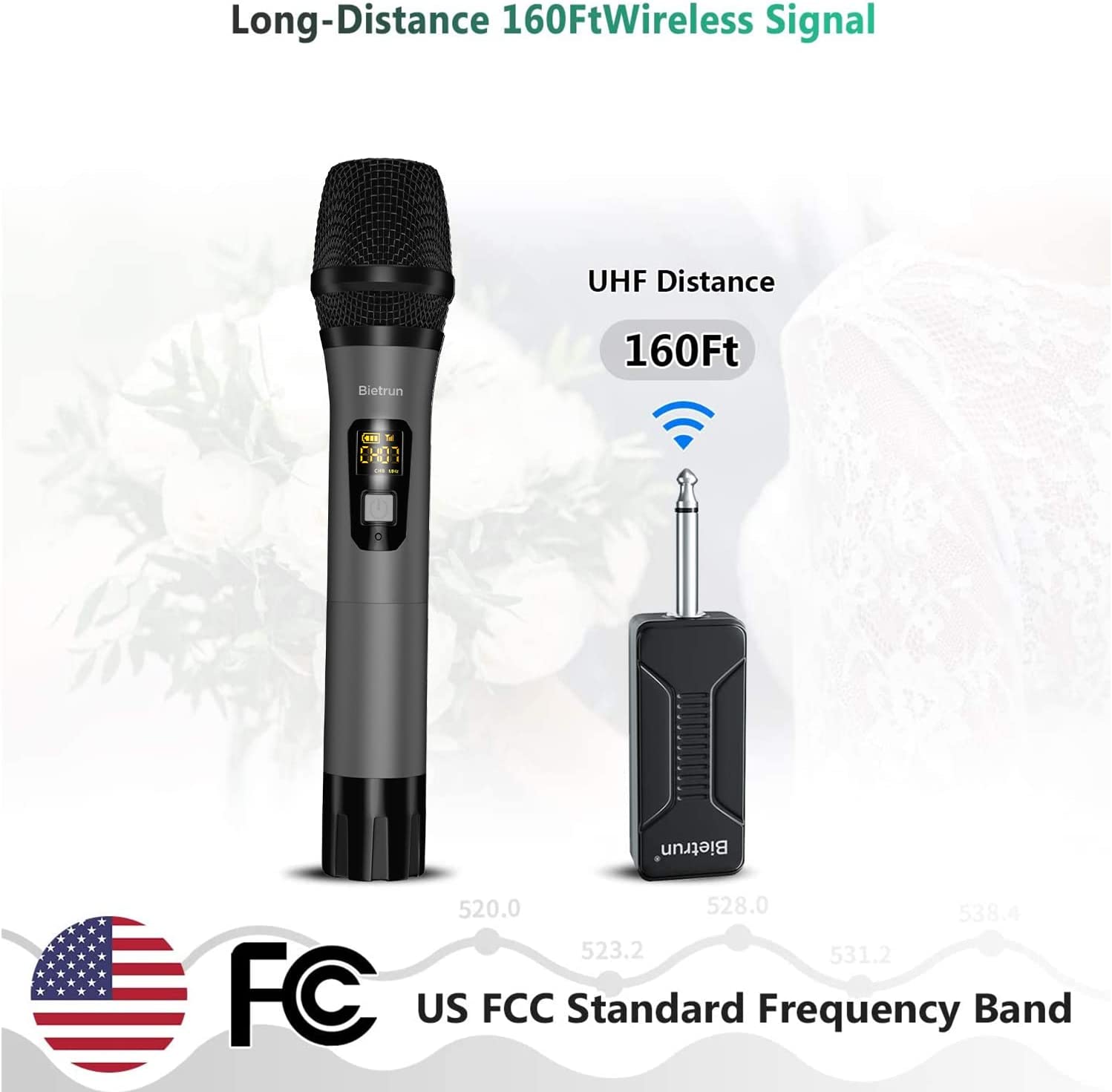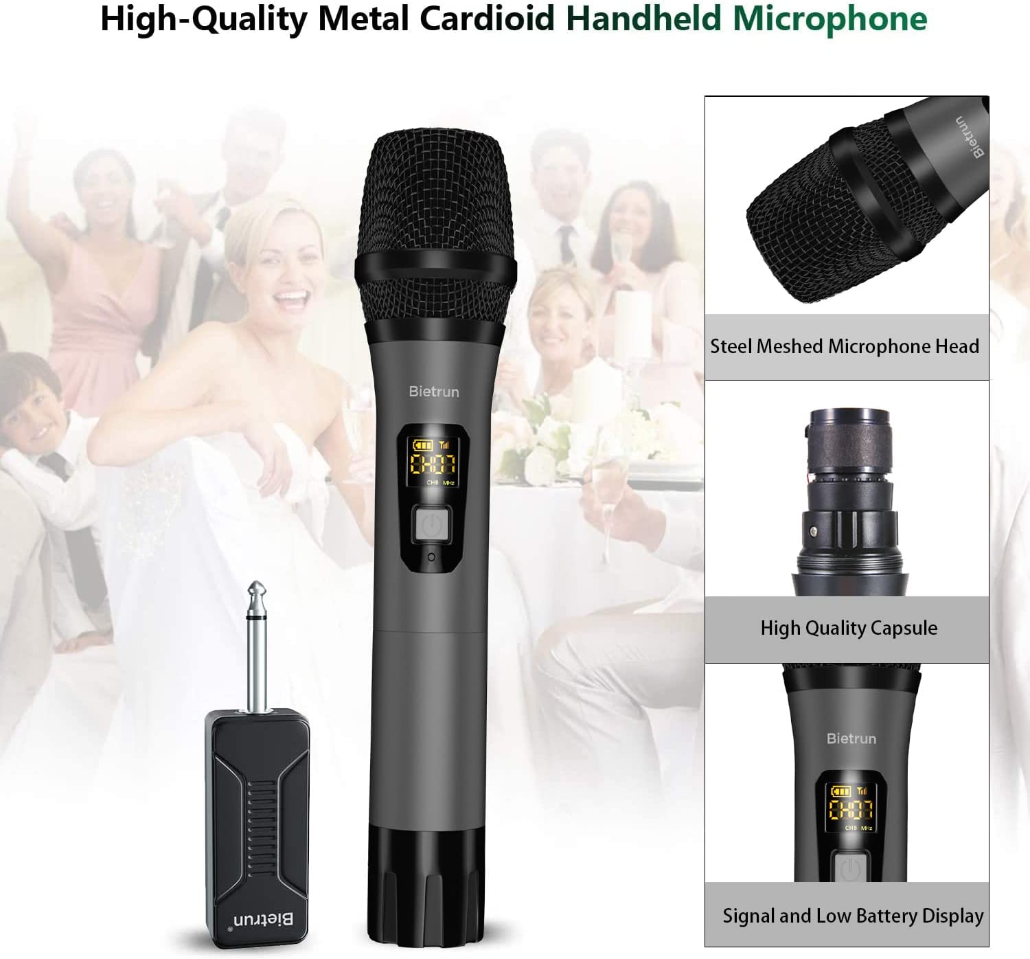 Bietrun Wireless Microphone Only for Mic Input, UHF Metal Dynamic Handheld Multipurpose Mic with Rechargeable Receiver (Work 4hs), 160ft Range, for Karaoke Machine, Amplifier Speaker, Mixer, Church