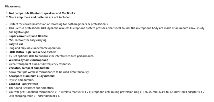 • Plug And Play, Easy To Use: ●Can Only Plug In equipment with Mic input, Can't Plug In AUX input, Otherwise No Sound.(Not Compatible with Bluetooth Speakers and Laptop)●For With Mic input Speaker, Singing Machine, Audio Amplifier, Pa System, Mixer, Voice Amplifier And More Streaming Multimedia Equipment..●The Display Can Show The Battery Power And Signal Strength In Real Time, Don'T Worry About Suddenly Not Working.