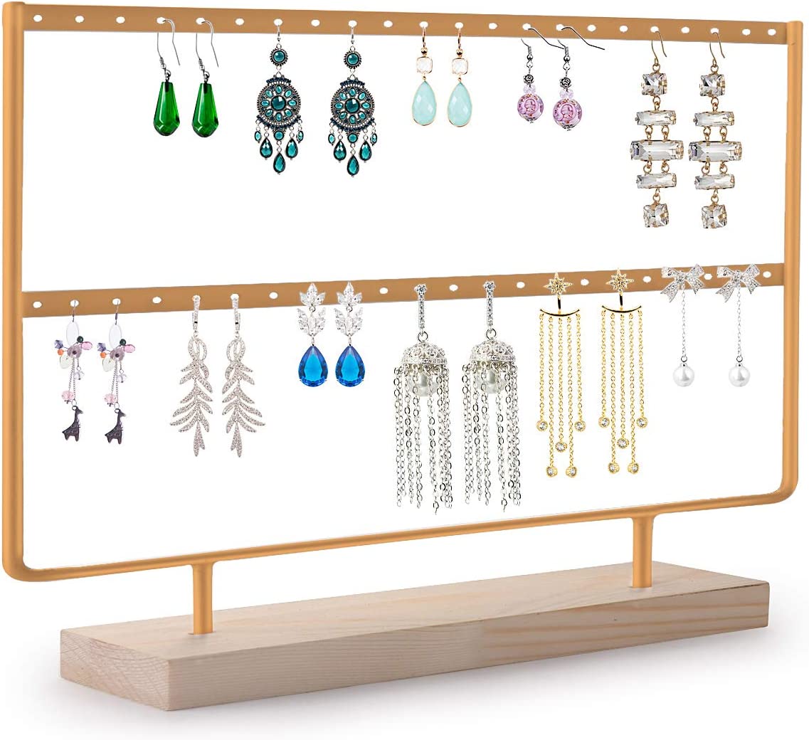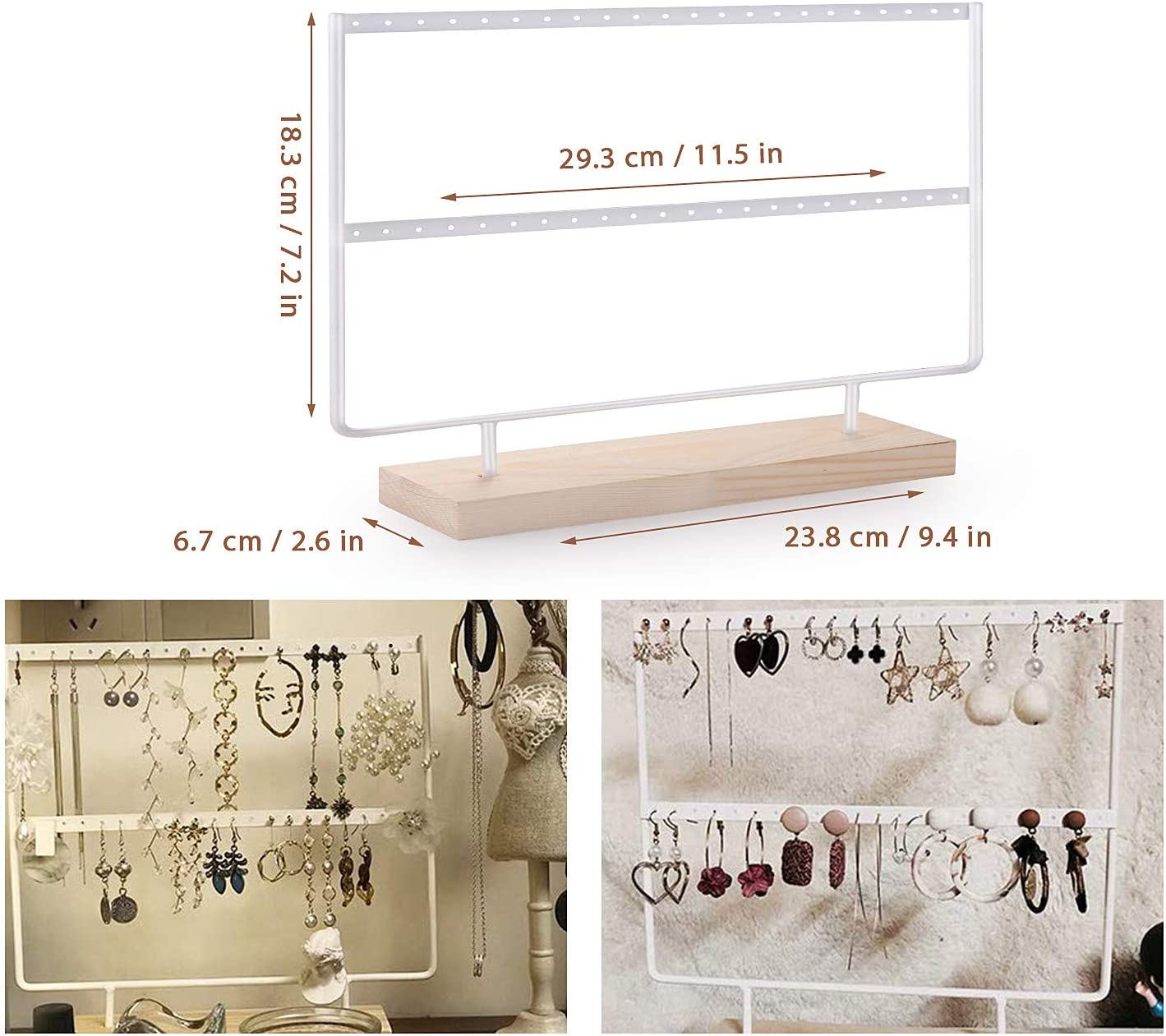 46 Holes FOR EARRINGS- This jewelry rack can hold up to 22 pairs of earrings . You’ll be able to hang up your favourite studs, dangle earrings, and hoops with ease. No longer do you need to worry about losing the backs of your earrings. This holder can accommodate push backs, screw backs, butterfly backs, and locking backs.