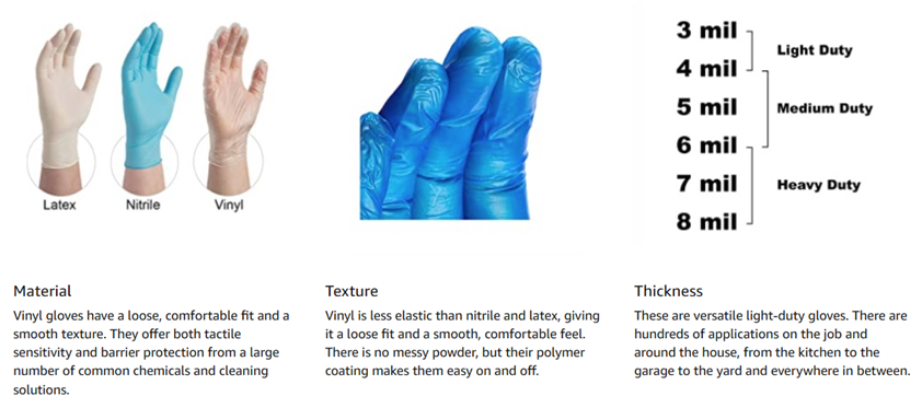 LIGHT-DUTY PROTECTION: Constructed from 3-mil PVC, our vinyl gloves deliver reliable barrier protection against many common cleaning solutions & chemicals. Best for short-duration & light-duty tasks.