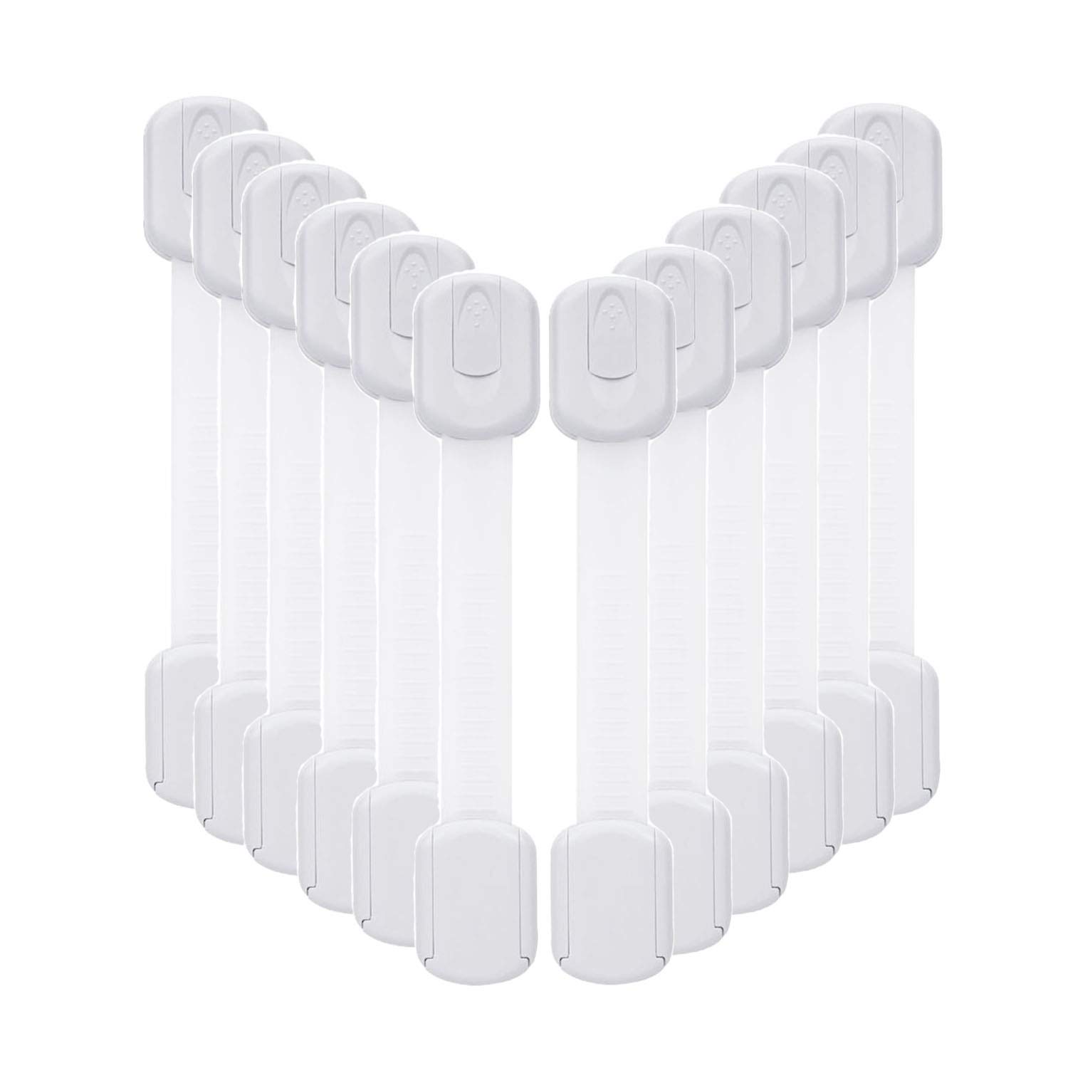 12 Pack Baby Proofing Cabinet Strap Locks - Vkania Kids Proof Kit - Child Safety Drawer Cupboard Oven Refrigerator Adhesive Locks - Adjustable Toilets Seat Fridge Latches - No Drilling