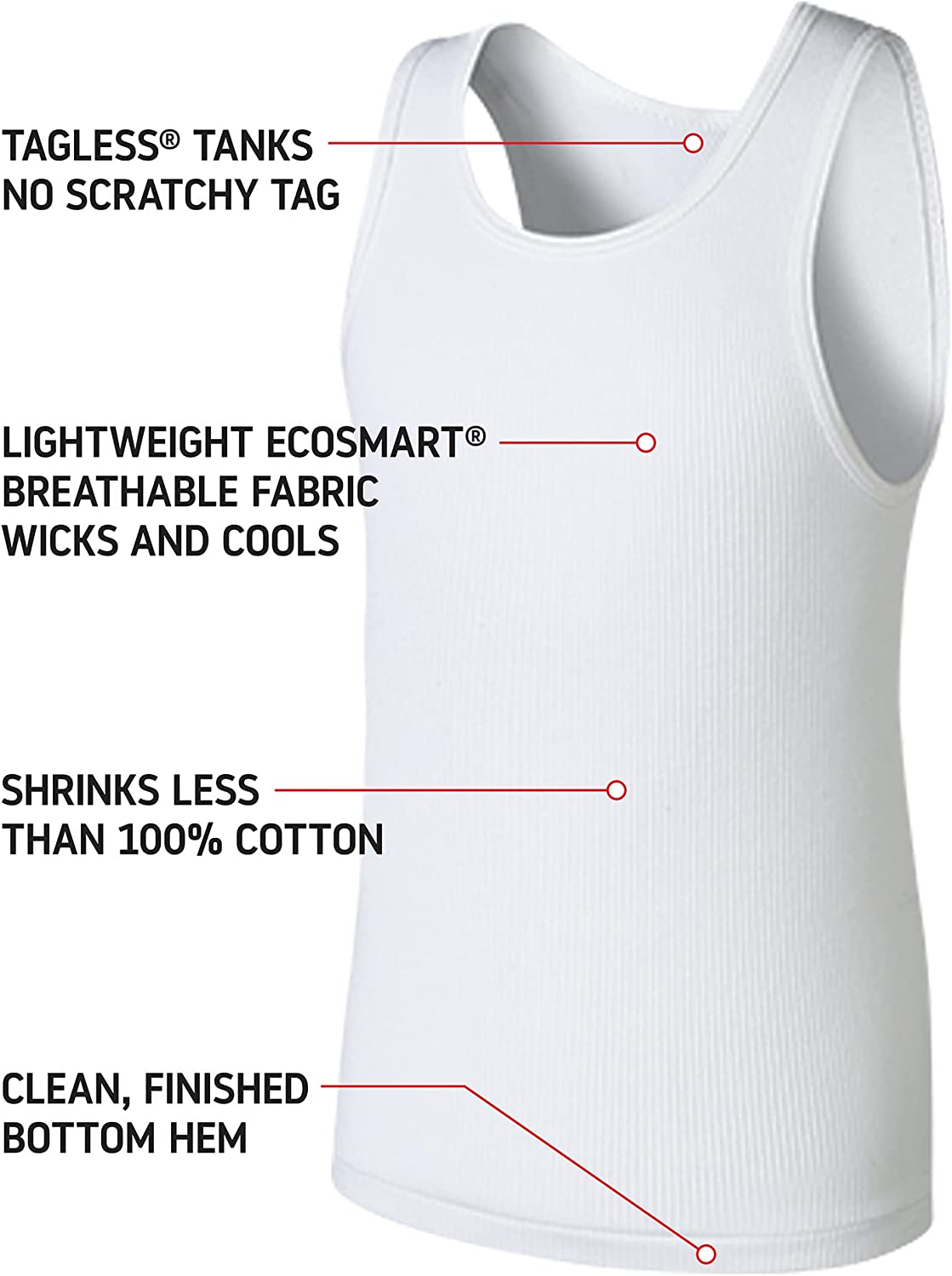 Hanes Boys' Tank Undershirt, EcoSmart Cotton Shirt, Multiple Packs Available