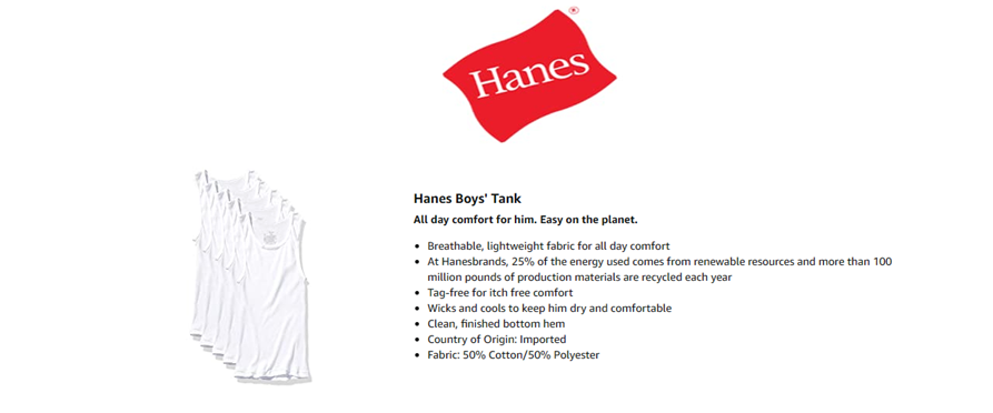 • QUALITY FABRIC - Hanes boy's tank tops feature a 50/50 blend of U.S. grown cotton and polyester. A portion of the polyester fibers comes from recycled plastic bottles.