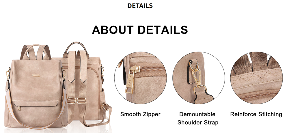 [HIGH-QUALITY MATERIAL]: Warm Tip: This backpacks made of oil wax material looks brighter, under different lighting condition, sometimes it feels shiny. This women backpack purse is made of high quality water resistant soft PU leather, metal accessories and fabric lining, which is fashionable and durable.Detachable shoulder strap made of canvas for reinforcement and durability.