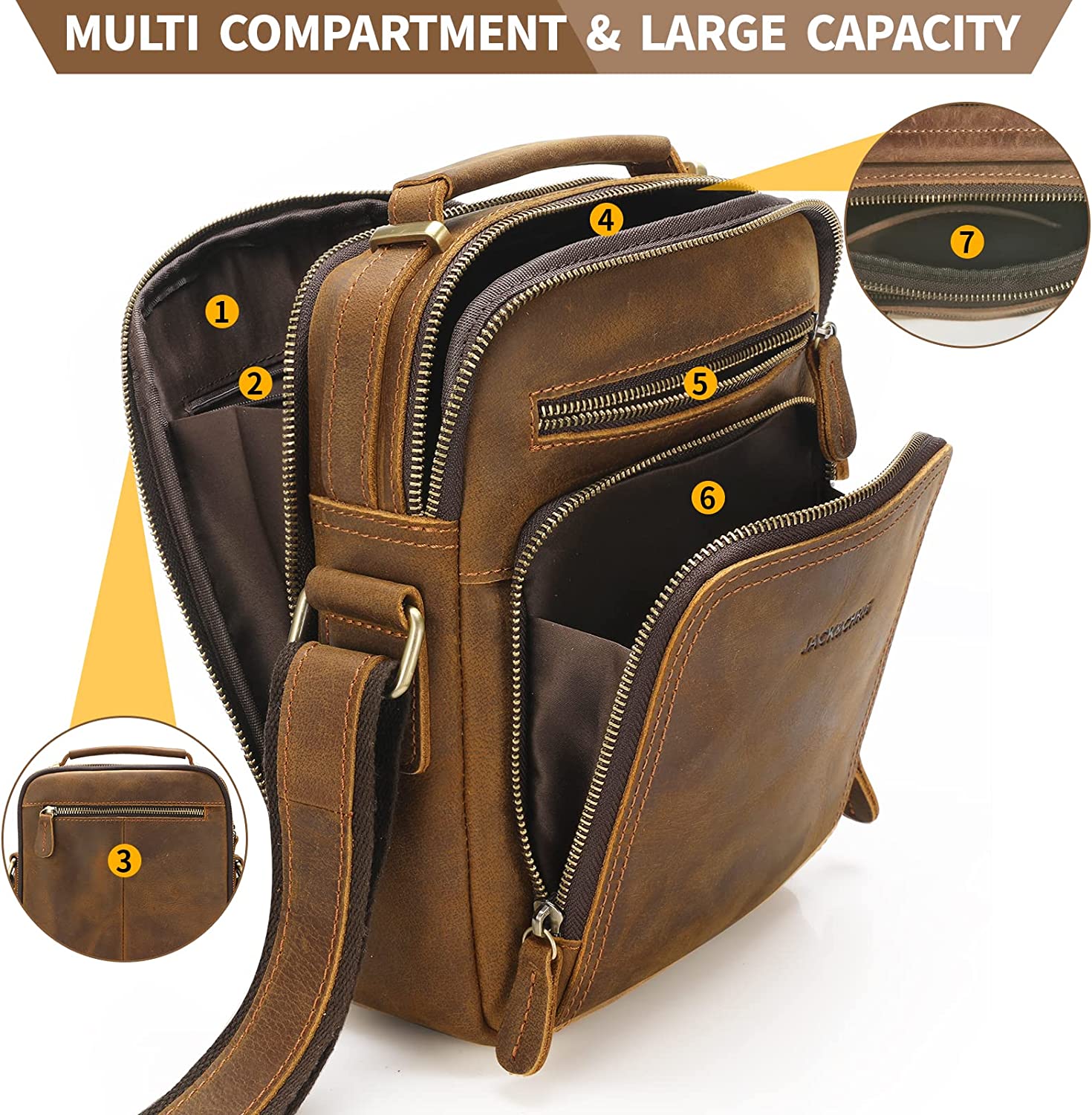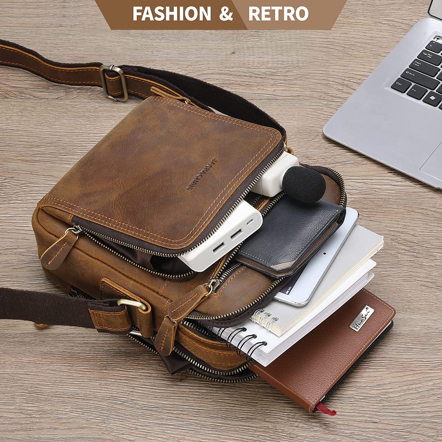 • A One Of A Kind Gift: Artful retro leather man bag and classic wild style man purse leather providesa refreshing update to timeless silhouettes. Each crossbody bag in appearance to be as unique as your loved one. The perfect mens messenger bag for birthdays, anniversaries, Father’s Day and Christmas.