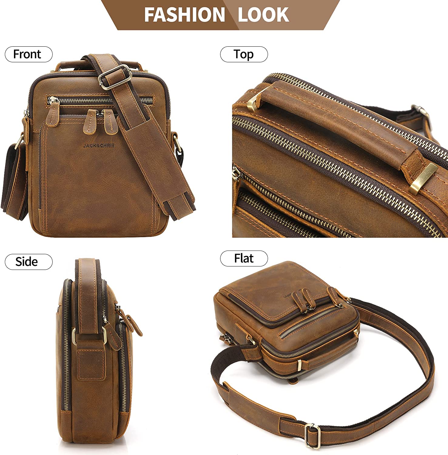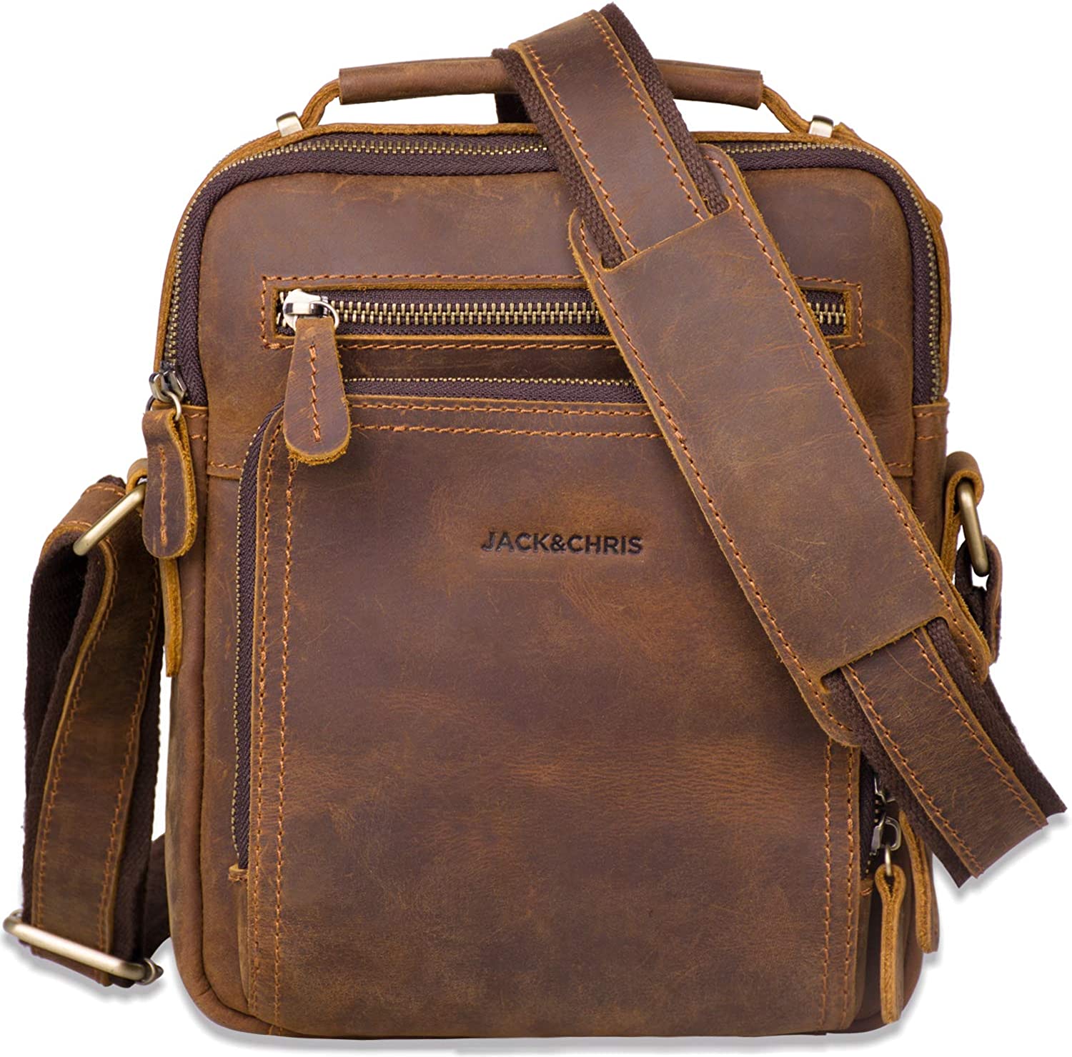 Jack&Chris Leather Messenger Bag for Men, Man Purse Crossbody Bags for Work Business