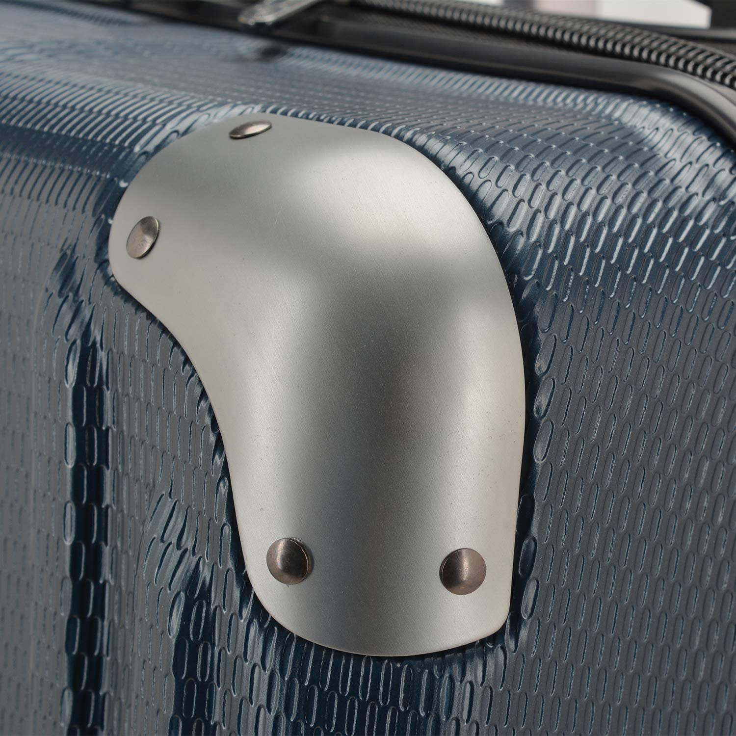 Durable hard-shell construction with riveted corner guards offer great protection