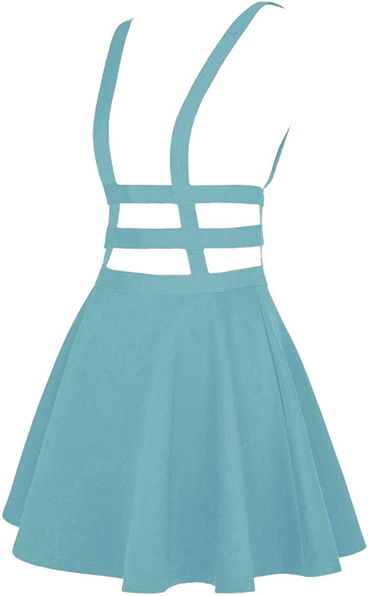 EXCHIC Women's Braces Skirt Pleated A-Line Suspender Mini Skirt