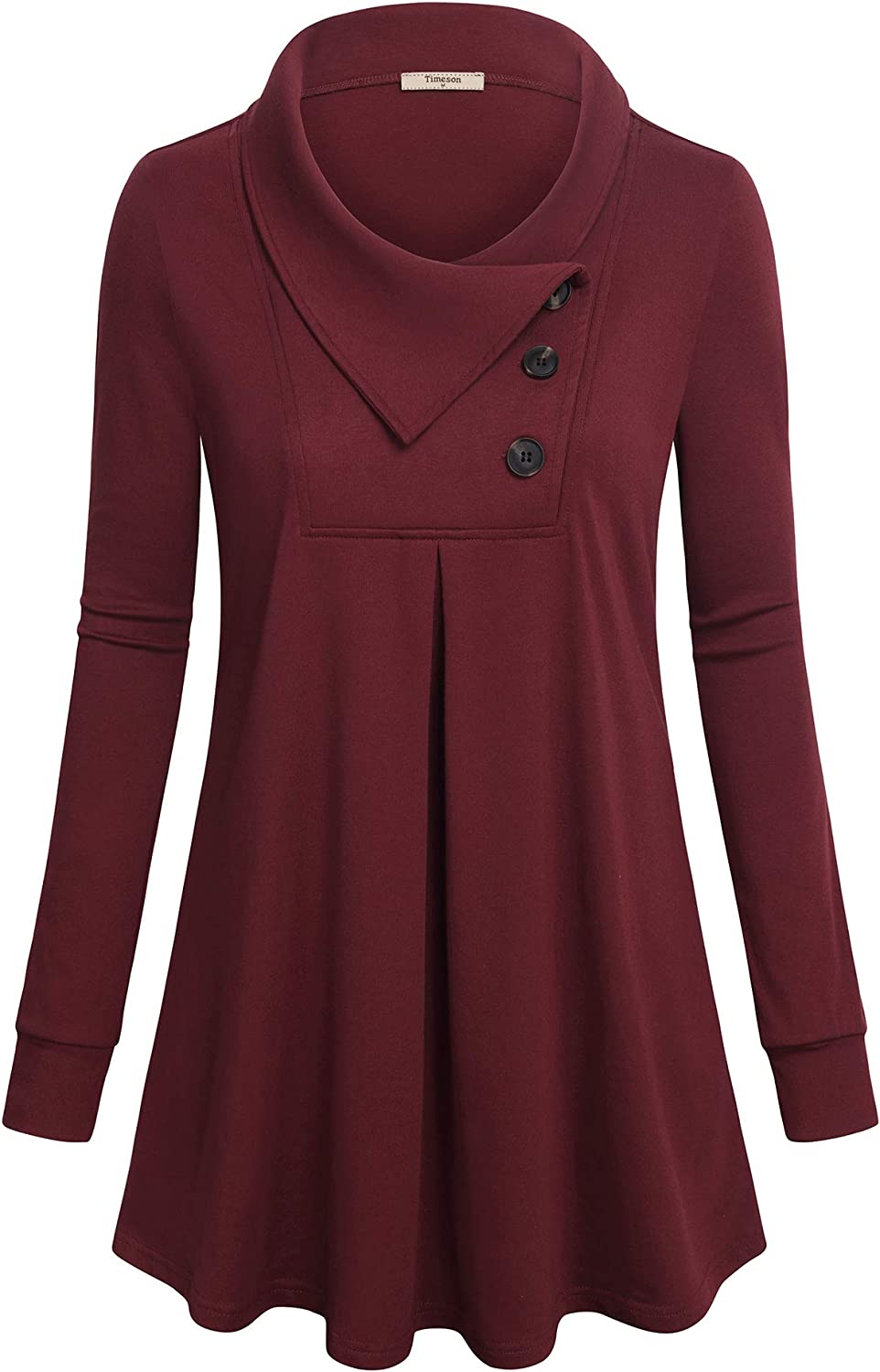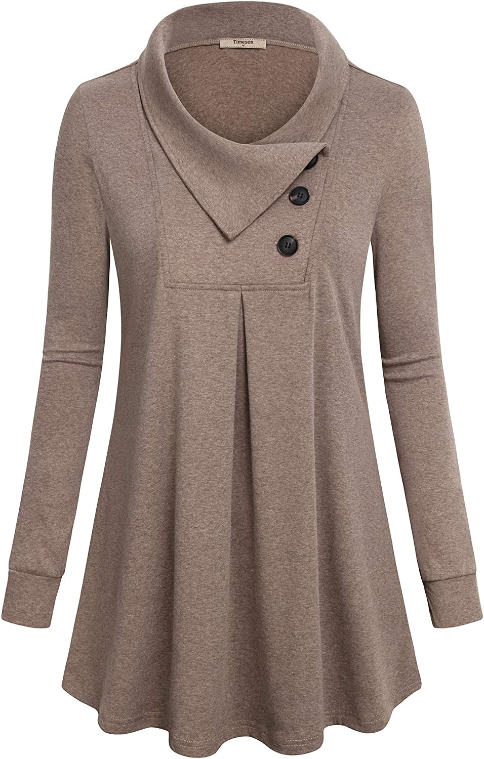 Timeson Women's Long Sleeve Button Lapel Pullover Tunic Swing Sweatshirt