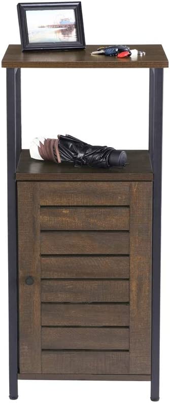 [VERSATILE]: This floor cabinet is designed with upper open shelves for display and bottom concealed spaces with single shutter door for storage; compact size makes it easy to fit for small spaces in the entryway, hallway or living room.