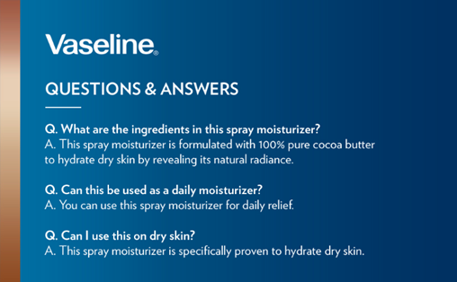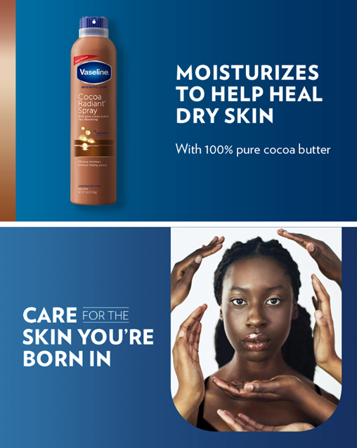 • TRUSTED RELIEF: Daily spray moisturizer that helps heal dry skin by combining 100 percent pure shea and cocoa butter with Vaseline's trust formula that's been helping lock in moisture for over 150 years