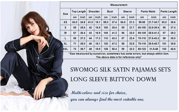 Gift: Women's silk pajamas for women is made of high quality imitation silk fabric, it is soft and natural shiny. Great Choice For your Wife, Girlfriend, Mother, Sister and Doughter as a Birthday gift and Great Present for New Year, Valentine's Day, Christmas Day, Bridal Party Gifts, Honeymoon Vacation or other Festivals or Anniversaries.