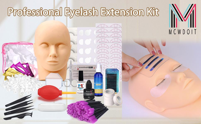 Pro 335Pcs Lash Eyelash Extension Kit, Mcwdoit Professional Lash Practice Kit with Flat Mannequin Head, Training Makeup Eye Lashes Grafting
