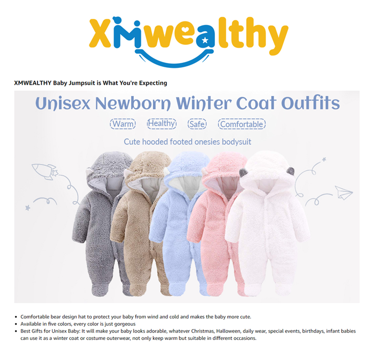 XMWEALTHY Unisex Baby Clothes Winter Coats Cute Newborn Infant Jumpsuit Snowsuit Bodysuits Registry for Baby Essentials Stuff