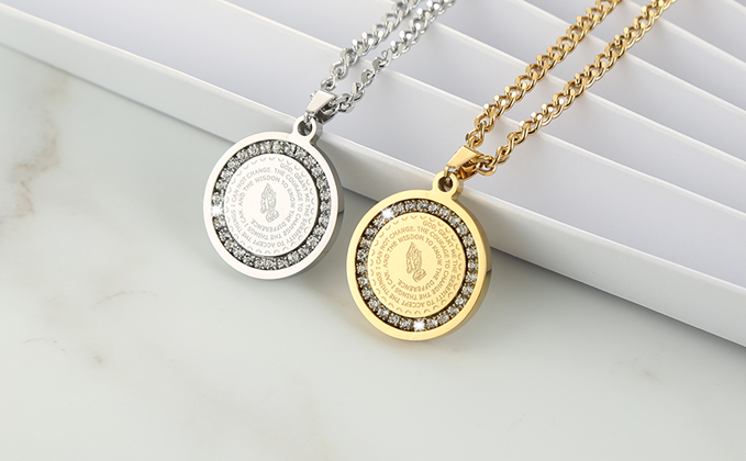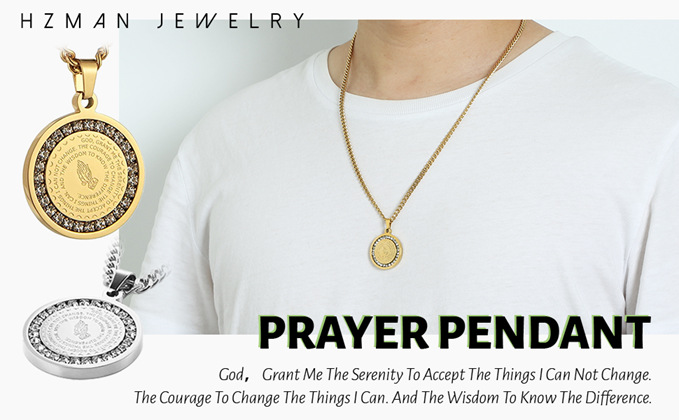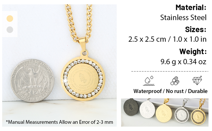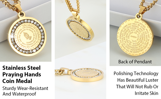 HZMAN Bible Verse Prayer Necklace Christian Jewelry Gold Stainless Steel Praying Hands Coin Medal Pendant