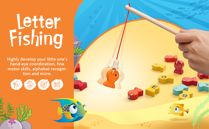 - Creative Way to Learn: The Magnetic Wooden Fishing Game is a great teaching tool to develop your kids hand and eye-coordination as well as their motor skills. Alphabet Fish Games challenging enough to keep kids entertained, yet easy enough to promote confidence.