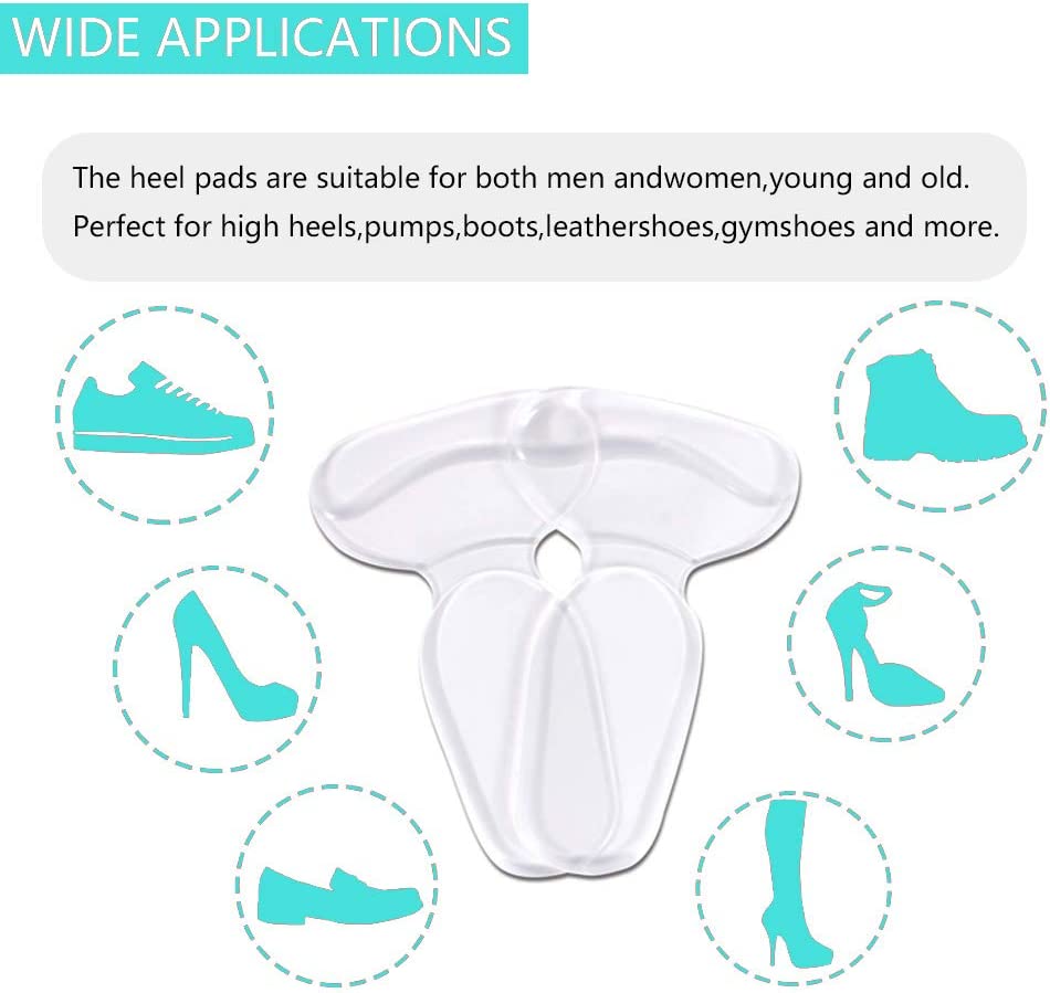 • LOOSE SHOES:We recommend that you use them in loose shoes to avoid pinching your feet.The heel grips are designed to fit the outline of the heel part of the shoe.Reduces about 1/4 to 1/2 ish of sizes. These heel cushion inserts make shoes a bit more tight. Gel material stop your feet from slipping in and out of your shoes.