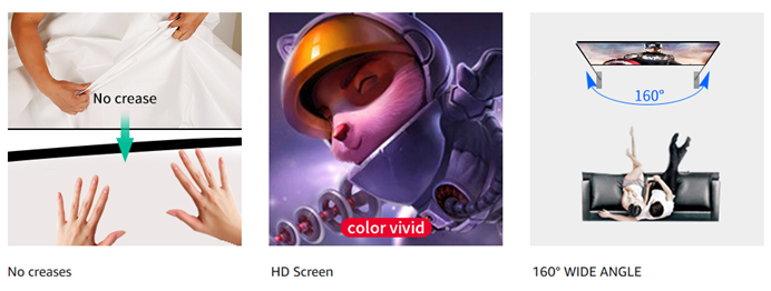- 【PROJECTOR SCREEN WITH STAND】80 inch Portable projector screen, 16:9 format,160° Wide Viewing Angle. The projection screen has made of high-quality polyester & spandex material .That offers sharp and high-resolution images,even support Front & Rear projection.