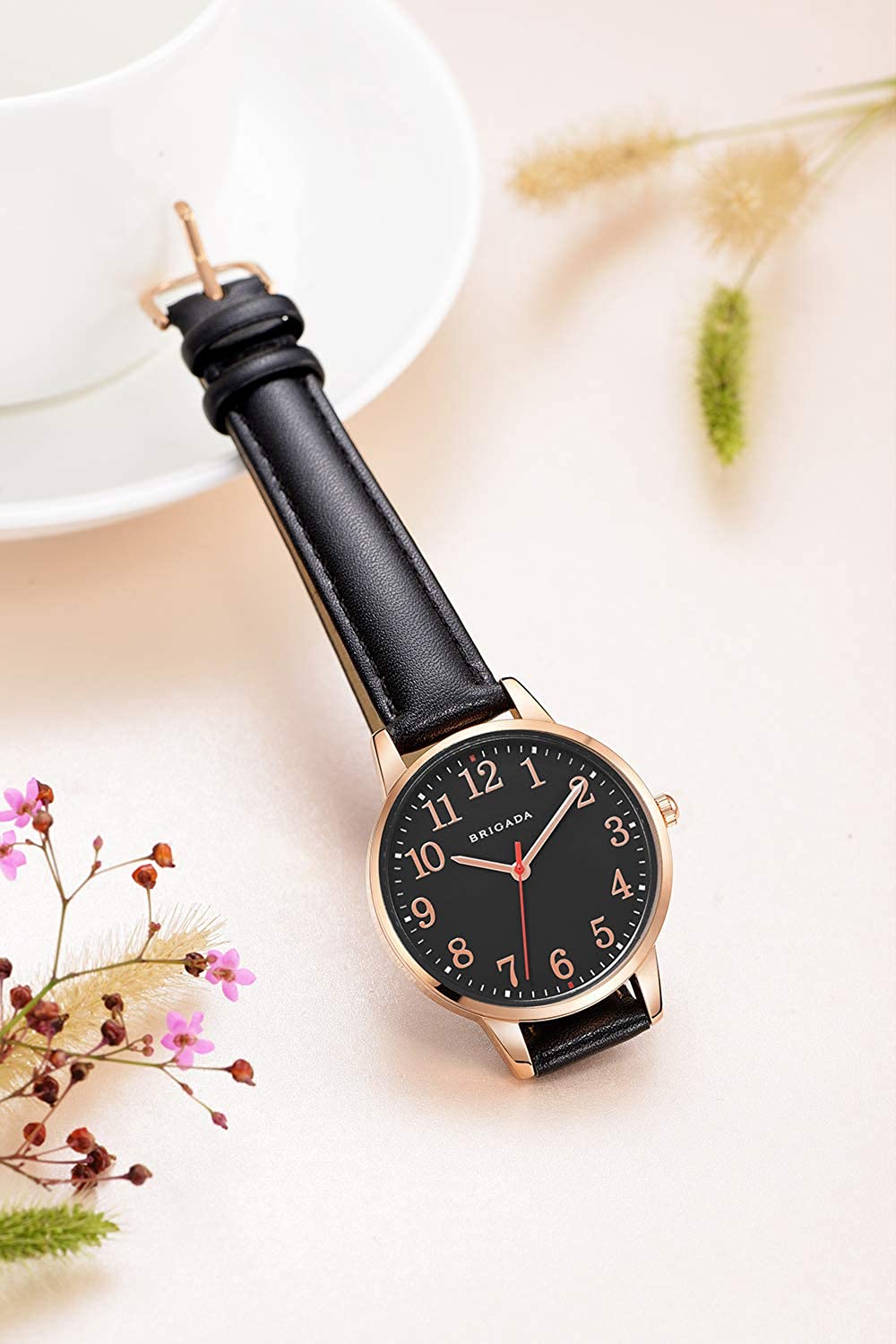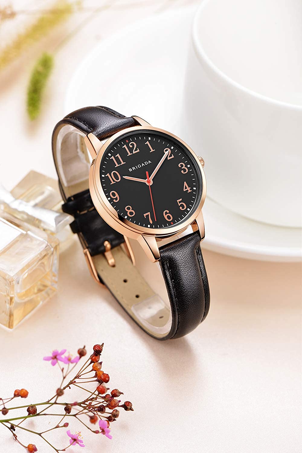 BRIGADA Women's Watch Elegant Watch for Women Leather Band Ladies Watch for Women Waterproof
