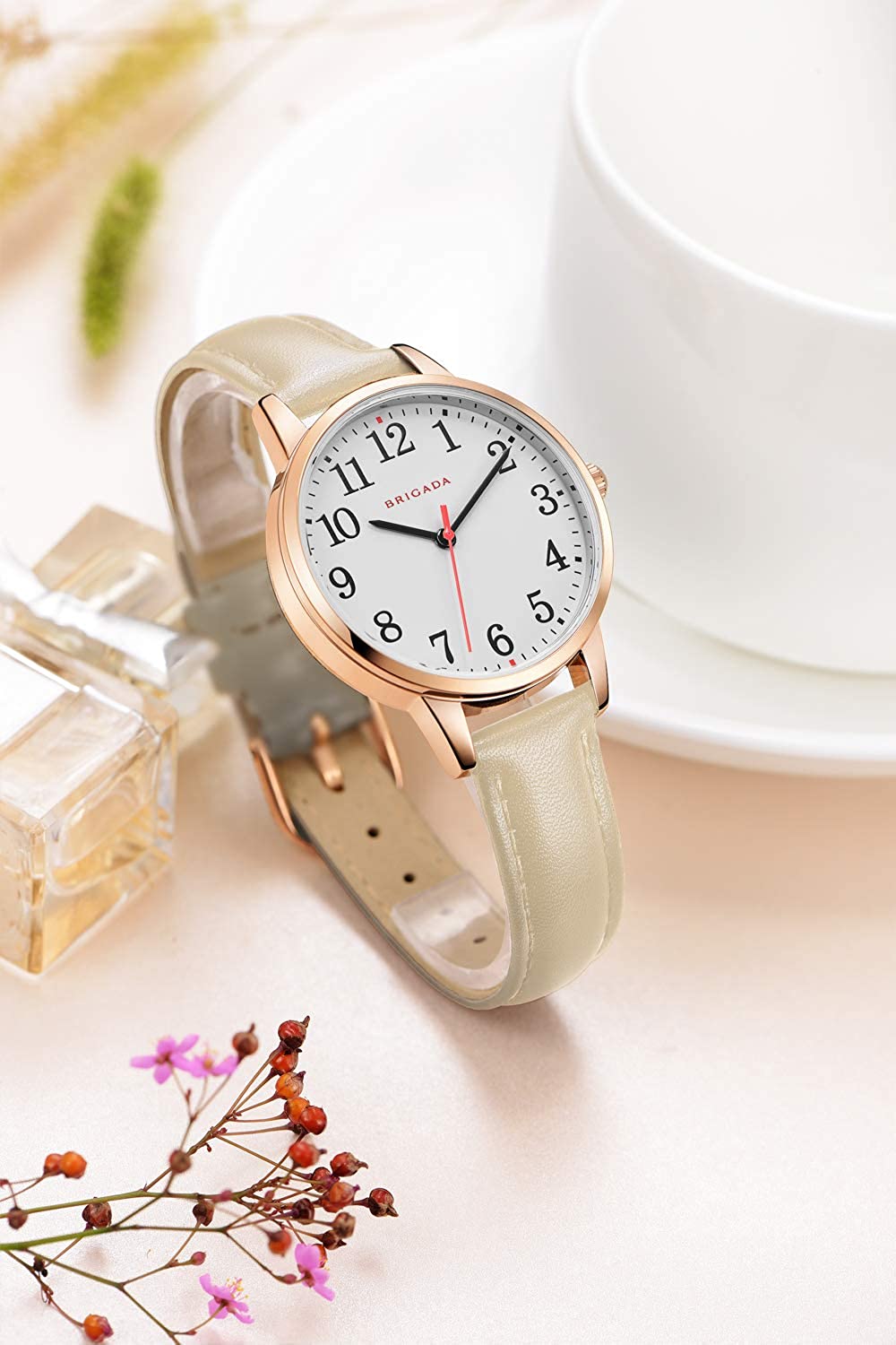 BRIGADA Women's Watch Elegant Watch for Women Leather Band Ladies Watch for Women Waterproof