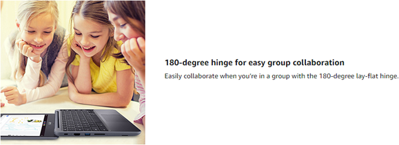 • The HD screen has a durable 180 degree hinge that can be used to lay the screen flat which is better for collaborative settings.