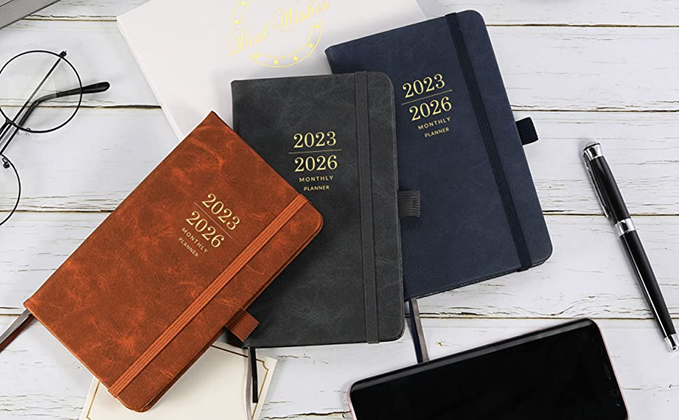- ENHANCED ORGANIZATION – Start planning your next 3 years in advance! You will never know what a different and better person you could become just in three years! This 3 year calendar can help you achieve your long-term goal, improve your organizational skill and become a better version of yourself. The durable, elegant, soft touch leather-like hardcover with foil accents exudes an air of calm, polished simplicity at work, school or home. Let's start your adventure with this easy-to-go planner.