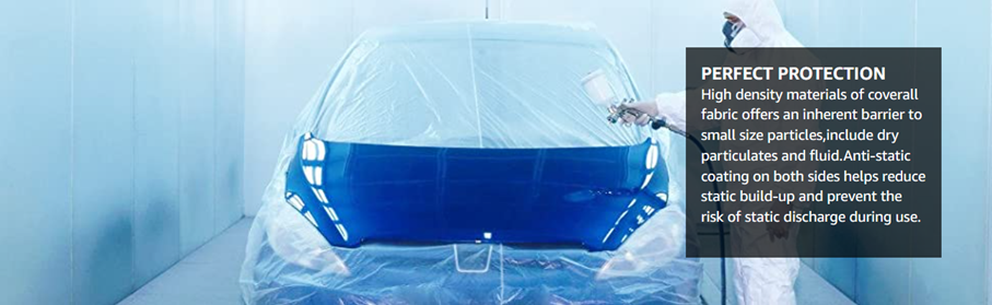 ▷ABSOLUTE PROTECTION- High density materials of coverall fabric offers an inherent barrier to small size particles,include dry particulates and fluid.Anti-static coating on both sides helps reduce static build-up and prevent the risk of static discharge during use.