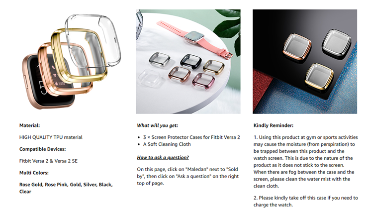 - 【360°Full Body Protection】:Specially designed built-in screen protector can protect your Fitbit Versa 2 from scratch, bumps and accidental drops. Anti-collision, Waterproof and Dustproof. Easy to clean with water and a small soft cloth(Gift with Maledan Cases)