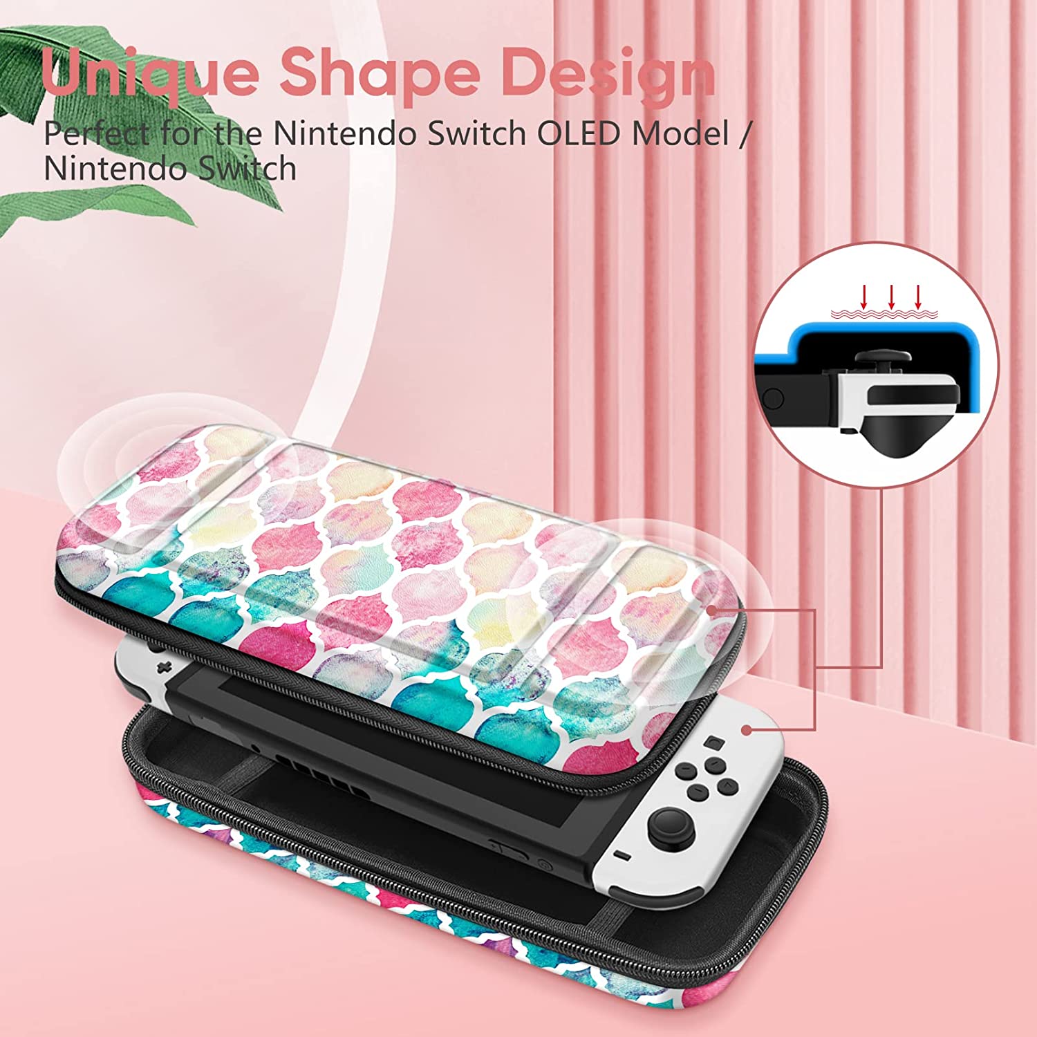 - Designed to make your Nintendo Switch / Switch OLED Model console and accessories more portable & travel-friendly. This carrying case fits Switch Console with both Joy-Con attached on.