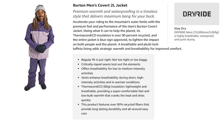 Accelerate your comfort with the premium feel and performance of the insulated Burton Covert Jacket. Its THERMOLITE Insulation is 40% recycled, and select colorways are blue sign approved to lighten the impact on both people and the planet. Our exclusive thermo-regulating Living Lining offers the ultimate in adaptable warmth and consistent comfort. A proverbial pot of gold, the Covert Jacket's full list of features includes a helmet-friendly Contour hood, a removable waist gaiter, and pockets for just about everything. Shell:100% Nylon, Lining:100% Nylon, Insulation:55% Polyester, 45% Recycled Polyester.