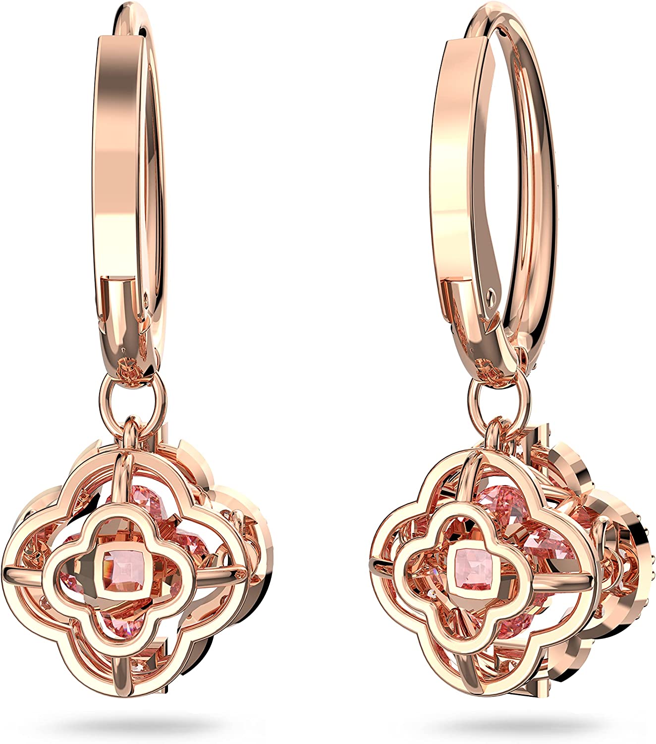 Items delivered: 1 x set of Swarovski Sparkling Dance hoop pierced earrings for women with pink stones surrounded by clear crystal pavé in a rose-gold tone plated setting, with Swarovski earring box