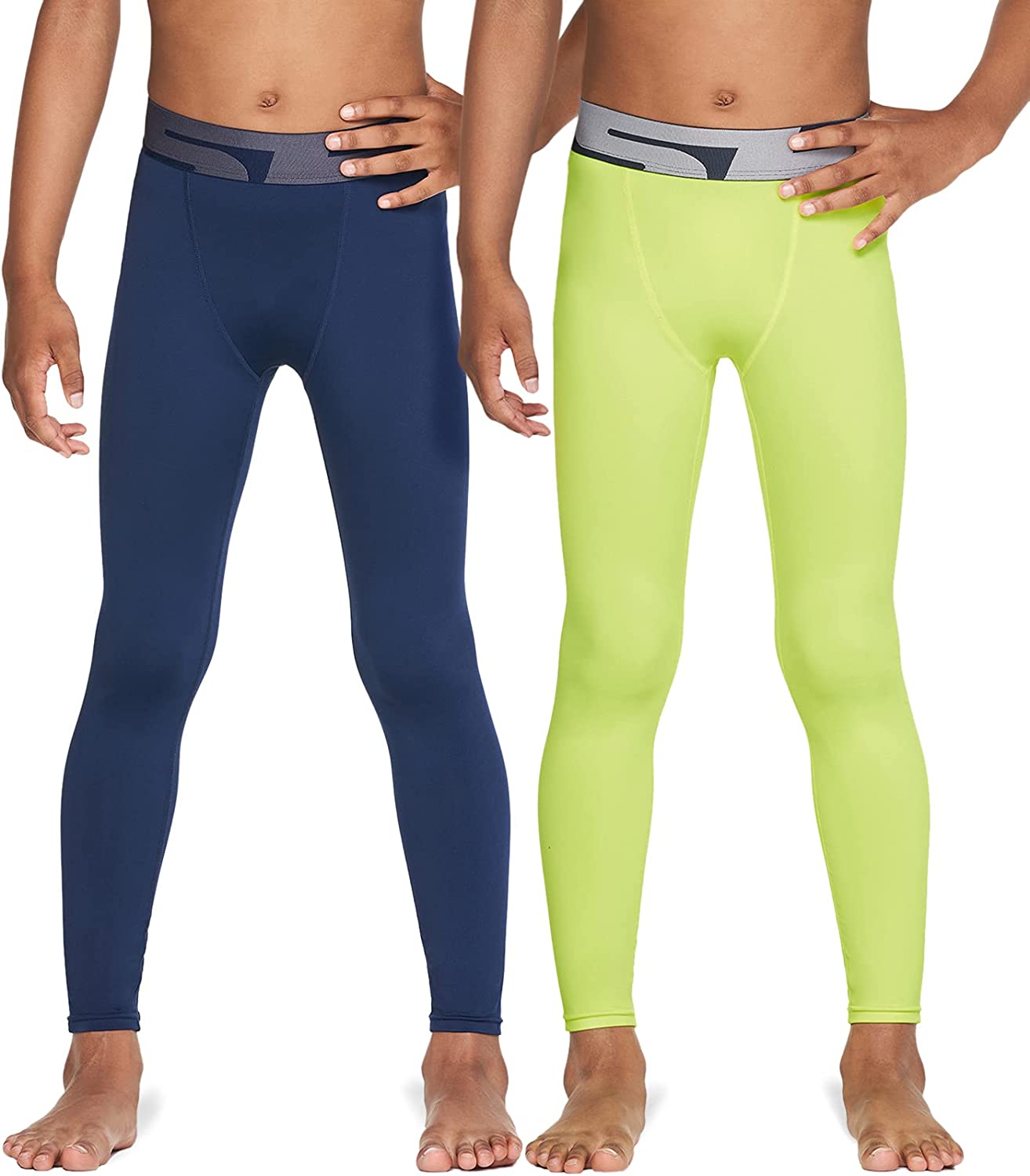 TSLA 1 or 2 Pack Boys Youth UPF 50+ Compression Pants Baselayer, Cool Dry Running Tights, 4-Way Stretch Workout Leggings
