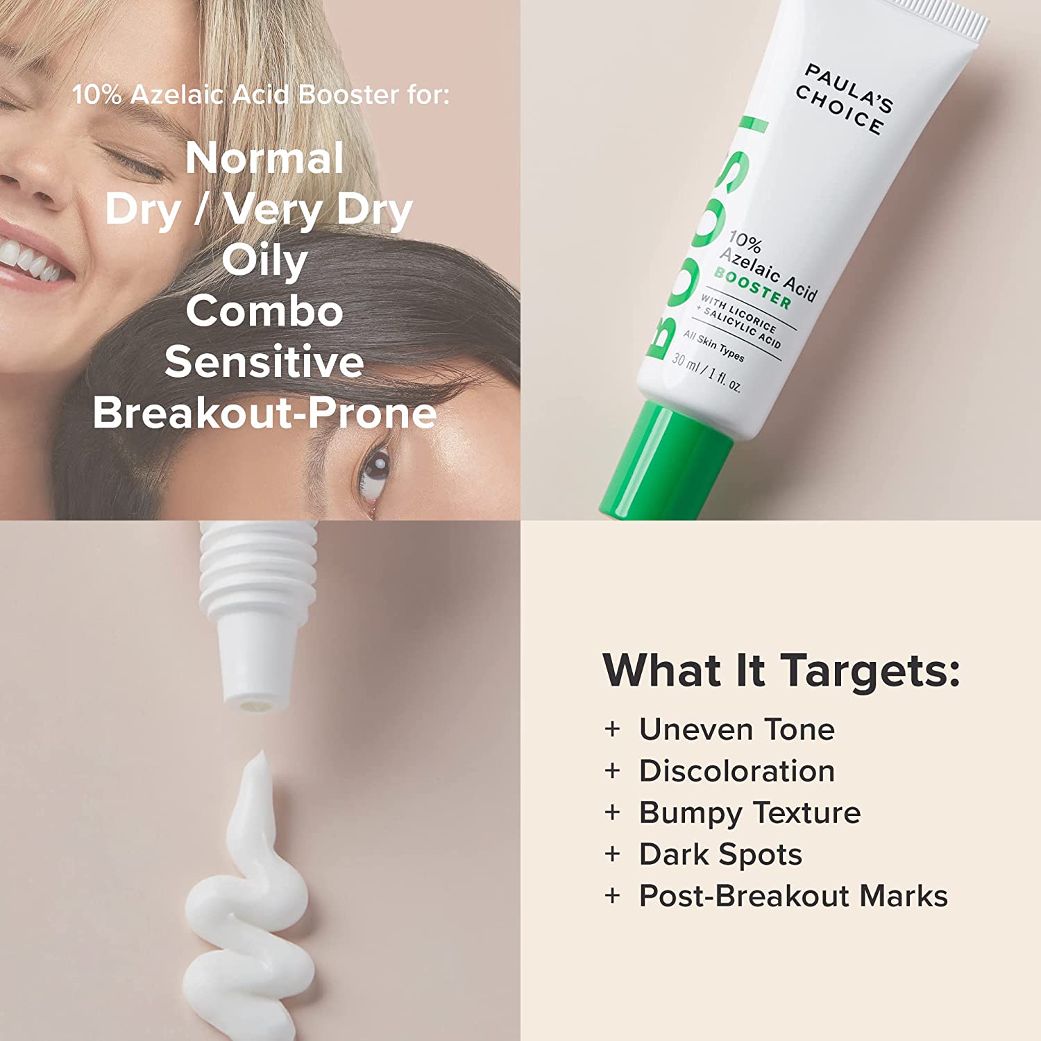 Paula's Choice BOOST 10% Azelaic Acid Booster Cream Gel, Licorice Extract & Salicylic Acid, Oil-Free Skin Brightening Serum, 1 Ounce