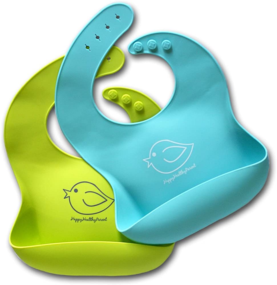Silicone Baby Bibs Easily Wipe Clean Comfortable Soft Waterproof Bib Keeps Stains Off, Set of 2 Colors