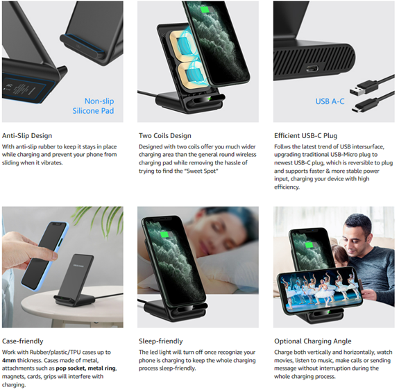 - ▶[VERTICAL AND HORIZONTAL CHARGING]: It can charge your phone both vertically and horizontally with perfect angle for your eyes, you can watch movies, listen to music, make calls or sending message without interruption during the whole charging process.