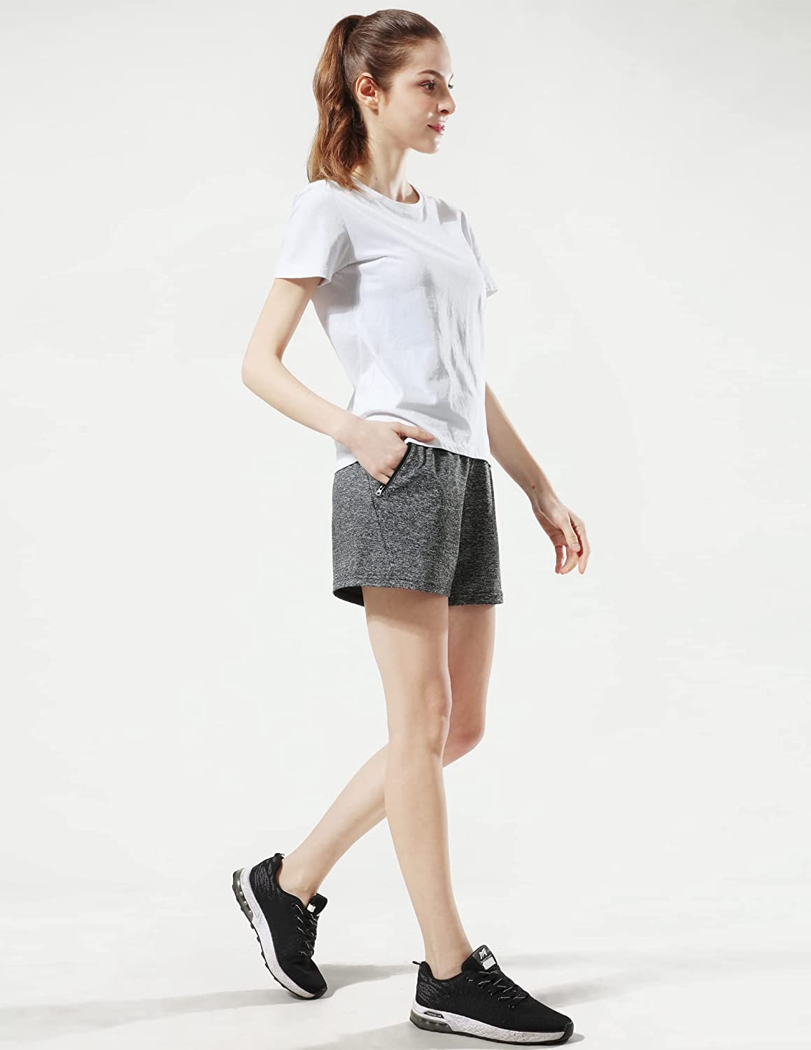 5 Pack: Womens Workout Gym Shorts Casual Lounge Set, Ladies Active Athletic Apparel with Zipper Pockets