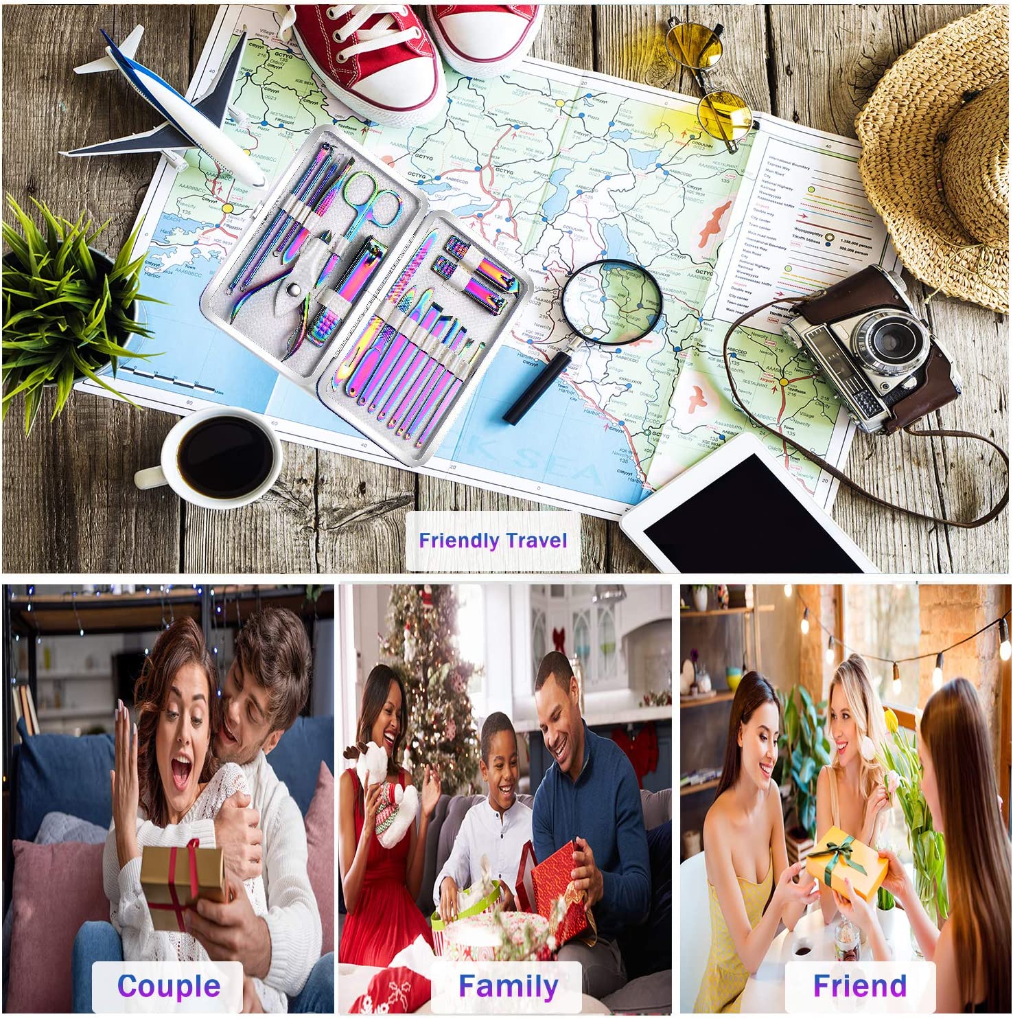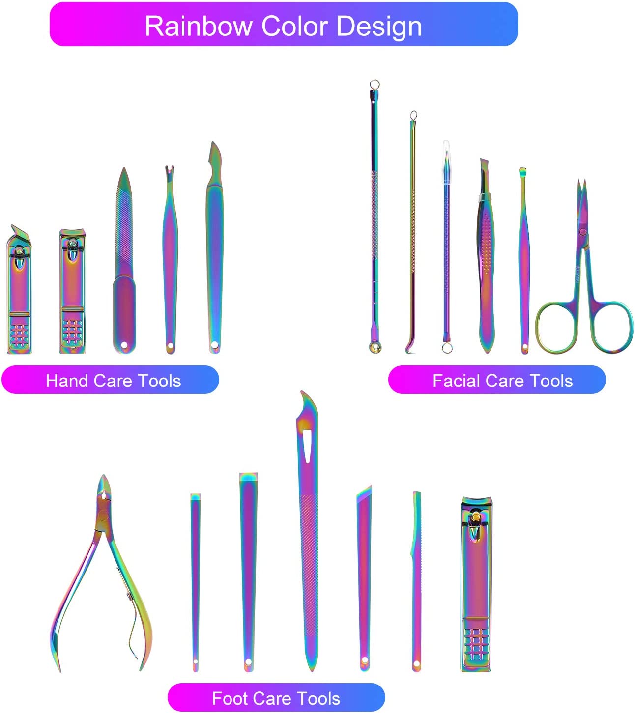 2020 New Rainbow Manicure Kits 18 Pcs Nail Clippers for Women Gift SFYDOM Women's Rainbow Leather Manicure Set (18-RainbowManicure Kits)