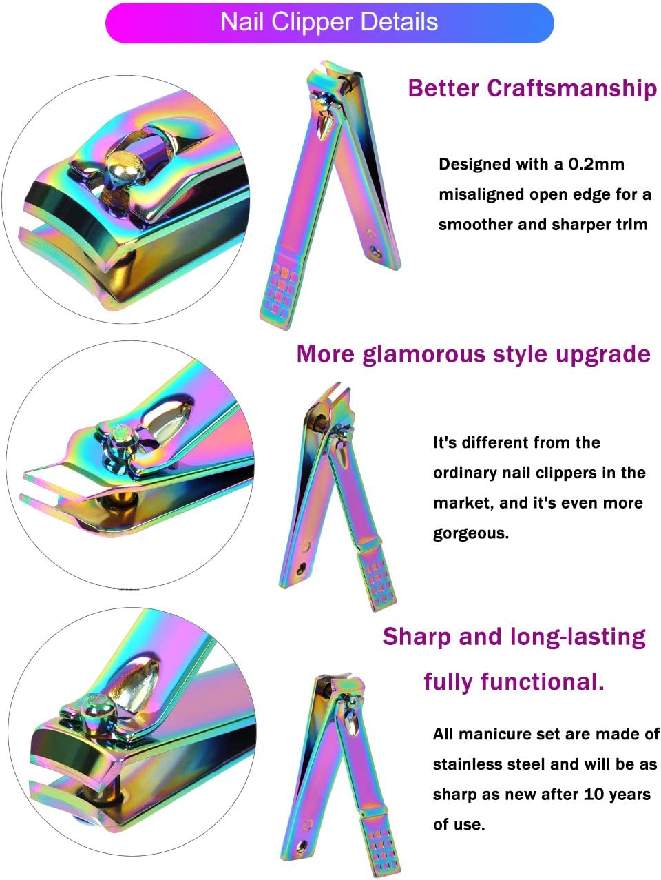 This rainbow manicure kits including high quality nail clippers, cuticle pusher, cuticle nipper and other usefully accessories.
