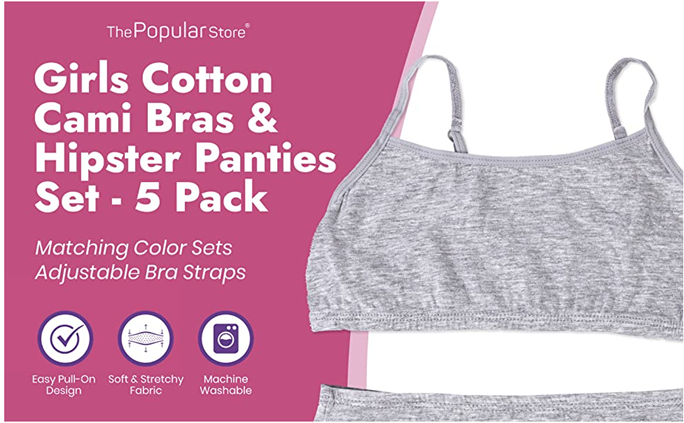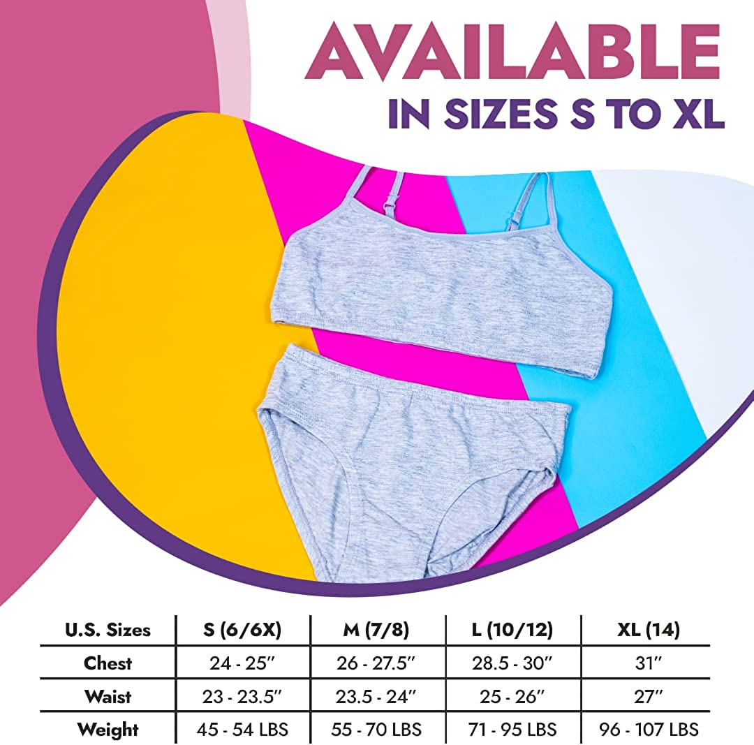 LEADING GIRLS UNDERWEAR VALUE PACK THAT'S PERFECT FOR EVERYDAY: Our Little Girl Underwear Gives You The Best Value For The Money! You'll Get Multiple Matching Sets Of Girls Training Bras & Girls Panties In A Variety Of Colors & Patterns.