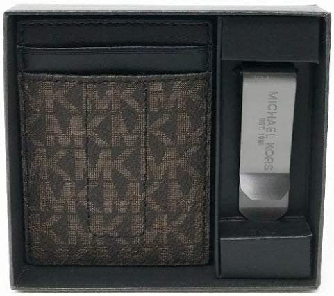 Michael Kors Mens Money Clip & Leather Card Case, Brown/Black
