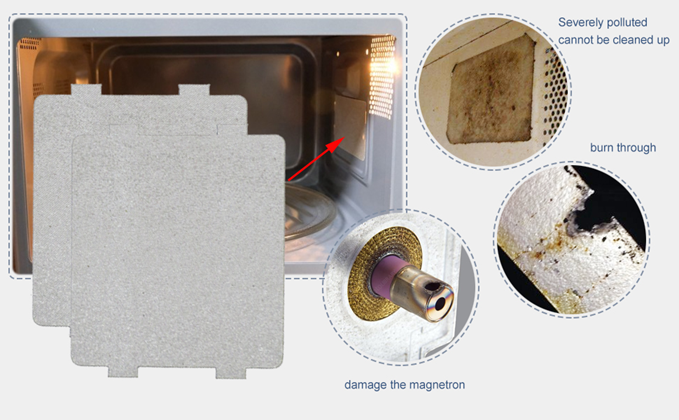 When the mica sheet in the microwave oven cannot be cleaned due to serious pollution or the black spot that has been broken down must be replaced in time, otherwise it is prone to fire and ablation, which will damage the magnetron over time.