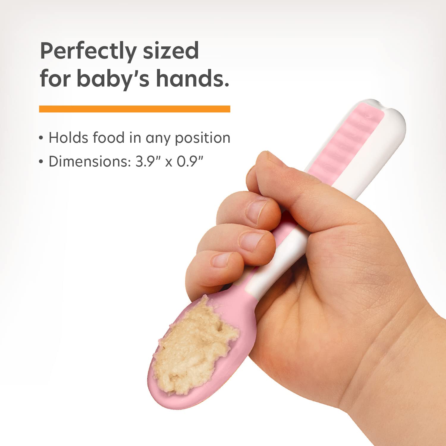 • Baby Utensils for Ages 6 Months to 18 Months: No scooping, no balancing, and best of all: no wrong way to hold it! Thicker, contoured handled baby spoons designed to comfortably and securely fit a child's hand.