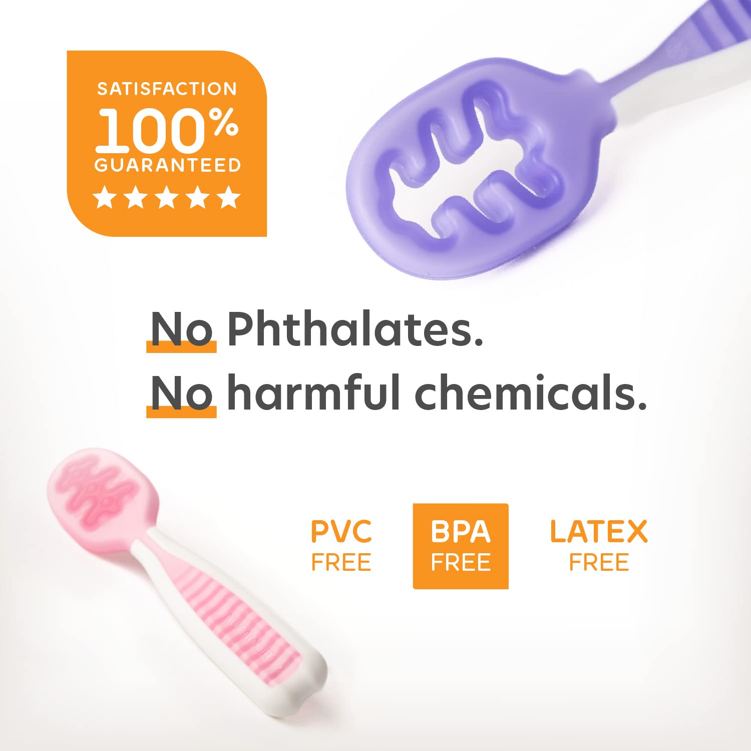 NumNum Pre-Spoon GOOtensils | Baby Spoon Set (Stage 1 + Stage 2) | BPA Free Silicone Self Feeding Toddler Utensils | for Kids Ages 6 Months+, 1-Pack, Two Spoons, Frosty Lilac/Rosebud
